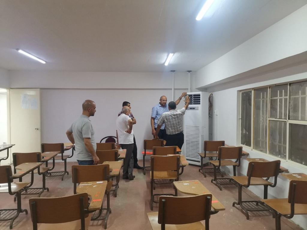 بتوجيه واشراف مباشر من قبل السيد عميد كلية التربية الأساسية الأستاذ المساعد الدكتور صفاء الدين عبد الله سليمان واشراف معاوني العميد العلمي والإداري الأستاذ الدكتور محمد توفيق عثمان والأستاذ المساعد الدكتور محمد يونس صالح الجريسي تم يوم الاربعاء الموافق 4/8/2021 الانتهاء من كافة الاستعدادات والتحضيرات الإدارية والفنية الخاصة بالامتحانات الحضورية للاختبار النهائي للفصل الثاني الدور الأول للعام الدراسي 2020 – 2021 والذي سيكون موعده يوم الخميس الموافق 5/8/2021 . حيث تم تهيئة القاعات وأخذ بنظر الاعتبار التباعد الصحي وتوجيه الطلبة بالالتزام بالتعليمات الصحية وتعليمات الوزارة ورئاسة الجامعة ، وأيضا تم تهيئة أجهزة مكيفات الهواء ( السبالت ) في القاعات الامتحانية وتحضير المياه الباردة للطلبة لتقليل شدة حرارة الجو اثناء الامتحان .