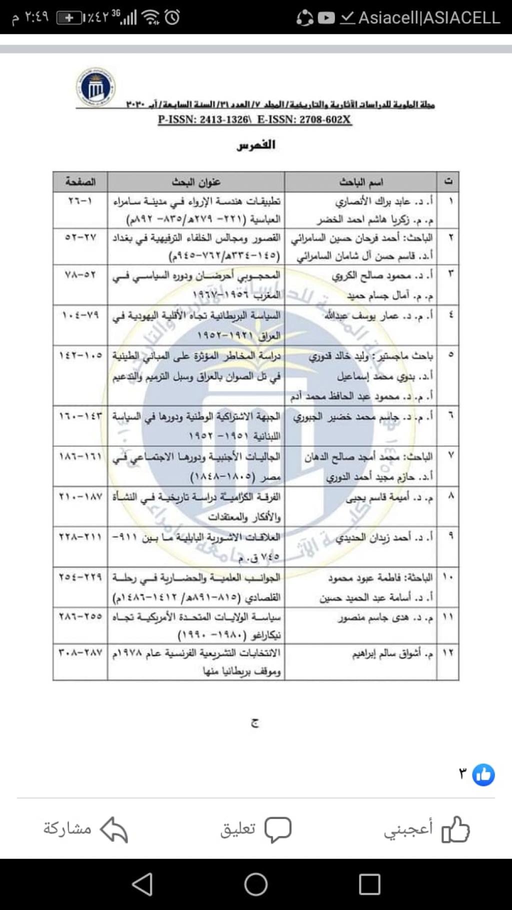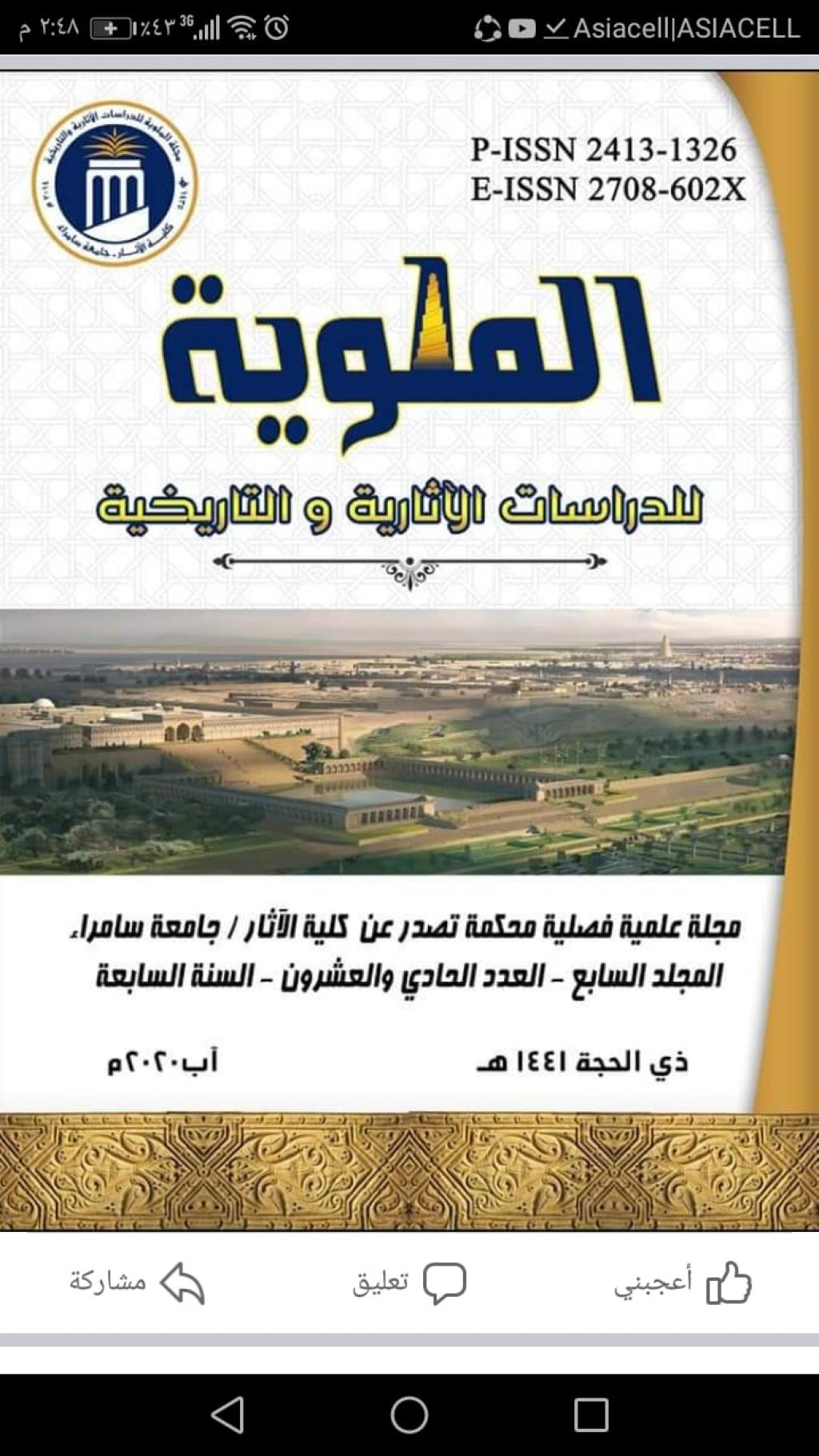 الاستاذ المساعد الدكتور عمار يوسف عبد الله من كلية التربية الاساسية ينشر بحثاً له في مجلة الملوية في جامعة سامراء