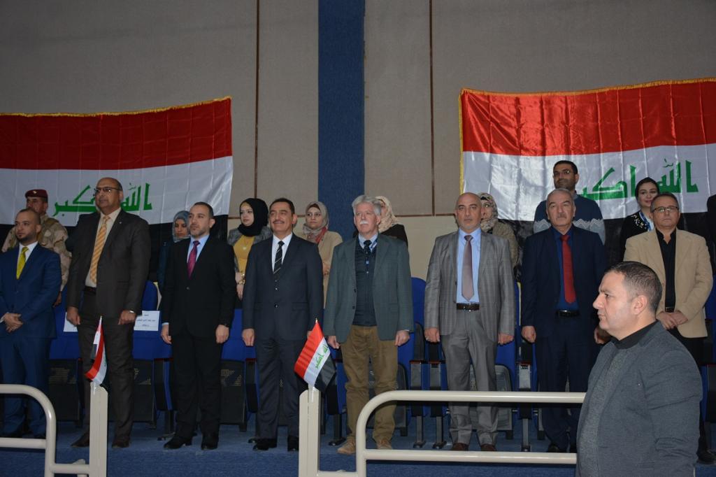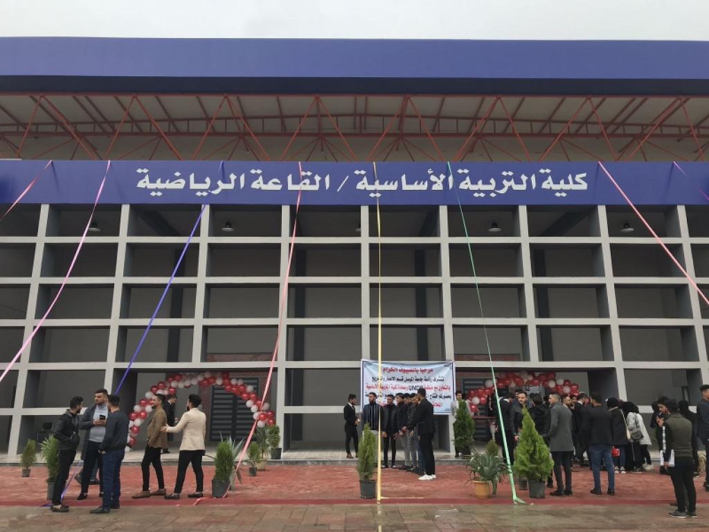 افتتح الاستاذ الدكتور قصي كمال الدين الاحمدي رئيس جامعة الموصل القاعة الرياضية التابعة لقسم التربية البدنية وعلوم الرياضة في كلية التربية الاساسية صباح يوم الاثنين الموافق 9/12/2019 وبإشراف أ.د. محمد توفيق عثمان حسين آغا عميد كلية التربية الاساسية والدكتور محمد يونس صالح معاون العميد للشؤون الادارية والدكتور صفاء الدين عبد الله سليمان وبحضور كثير من الضيوف من جامعة الموصل وخارجها ورؤساء اقسام كلية التربية الاساسية واساتذة وموظفين وطلبة الكلية بدأ احتفال إفتتاح القاعة بتلاوة آيات من القران الكريم و قرأ الحاضرون وقوفاً سورة الفاتحة على ارواح شهداء العراق الذين ضحوا بدمائهم الزكية من اجل الوطن والوقوف لسماع السلام الجمهوري ، بعدها القى أ.د. محمد توفيق عثمان كلمة الكلية وضح فيها للحاضرين بالصور عن القاعة منذ تعرضها للقصف ولغاية اعمارها واثنى على الدعم المفتوح من قبل السيد رئيس الجامعة وقسم الاعمار والمشاريع ومنظمة UNDP التي القى ممثلها كلمة المنظمة ، وبهذه المناسبة تم عرض فعاليات من قبل مدرسة الامين الابتدائية وروضة جنة الاحلام وعرض للتايكوندو من قبل مدرسة الحمدانية امام الحضور بعدها تم توزيع الهدايا على المشاركين .