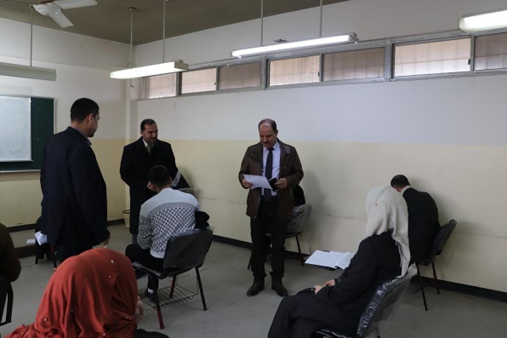 تفقد السيد عميد كلية التربية الاساسية الاستاذ الدكتور صالح ارديني صباح يوم الاحد الموافق 19/1/2020 سير امتحانات طلبة الدراسات العليا لقسمي التاريخ والتربية الاسلامية ، وتأكد من توفير الاجواء المناسبة للامتحان واستمرار توفير التدفئة للطلبة اثناء تأديتهم الامتحانات .