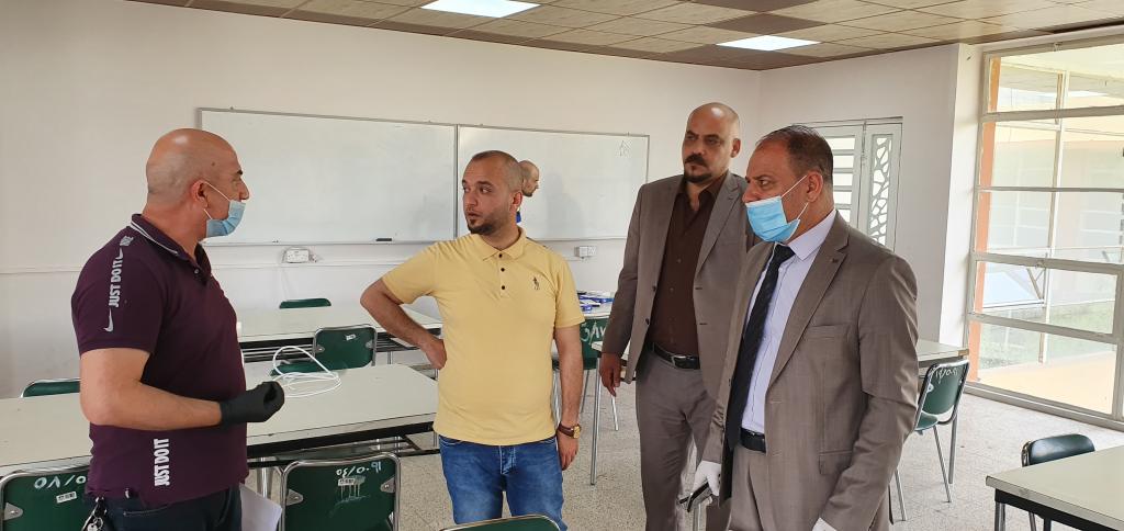 تفقد الاستاذ الدكتور صالح ارديني عميد كلية التربية الاساسية صباح يوم الاثنين الموافق 15/6/2020 عمل اللجنة الامتحانية المركزية واللجان الفرعية للأقسام العلمية في الكلية والتي يشرف عليها الاستاذ الدكتور محمد توفيق عثمان معاون العميد للشؤون العلمية حيث تستمر اللجان في مهامها بوضع الاسئلة الالكترونية والاشراف على جميع الامتحانات التكميلية الثانية ( الدور الرابع ) للعام الدراسية 2018 – 2019 لطلبة الكلية والتي تجرى عبر الفضاء الالكتروني لمنصة Edmodo . وايضاً بتوجيه من السيد العميد وإشراف الدكتور محمد يونس صالح معاون العميد للشؤون الادارية تم تخصيص قاعة كبيرة خاصة للسيطرة على الامتحانات وعمل اللجان الامتحانية جميعا ليكون وحداً وفي مكان واحد و لتفقد سير الامتحانات مركزياً من قبل العمادة .