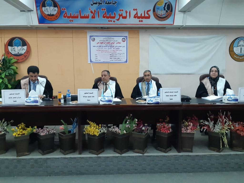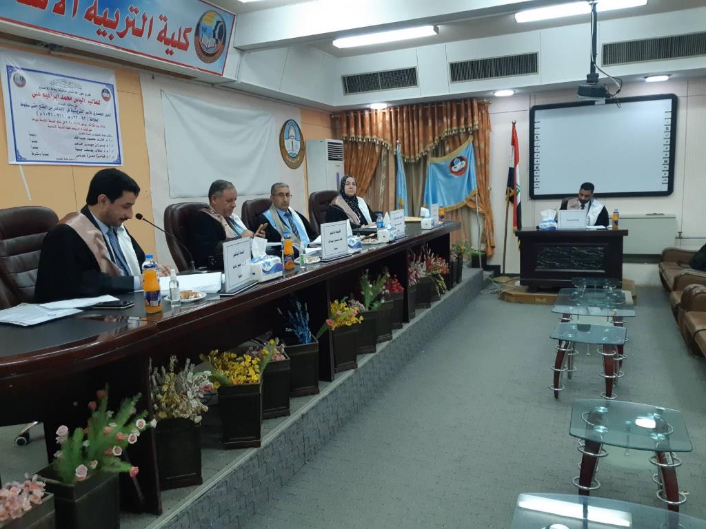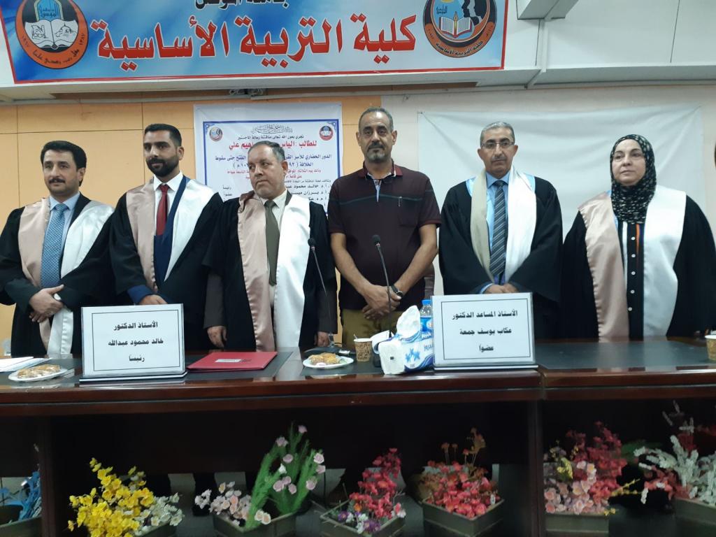 السيد عميد كلية التربية الاساسية يحضر مناقشة طالب الماجستير الياس محمد ابراهيم من قسم التاريخ في الكلية