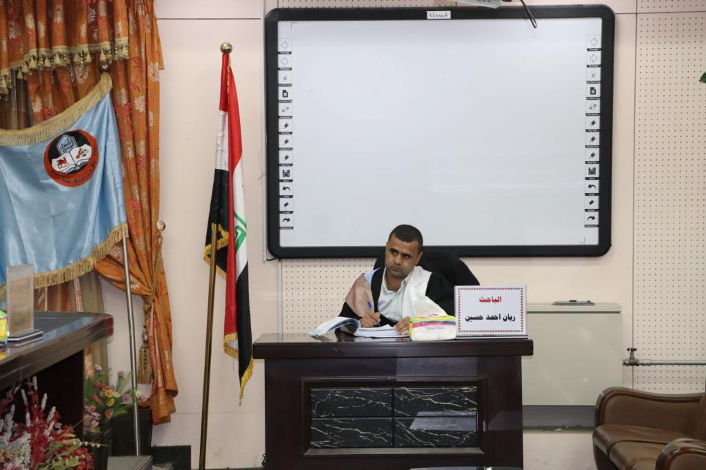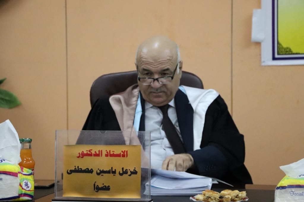 السيد عميد كلية التربية الاساسية يحضر مناقشة طالب الماجستير ريان احمد حسين المعماري من قسم التاريخ في الكلية