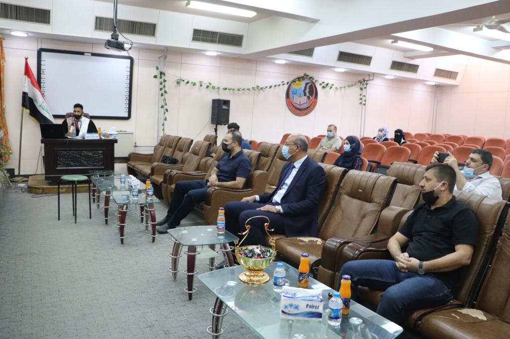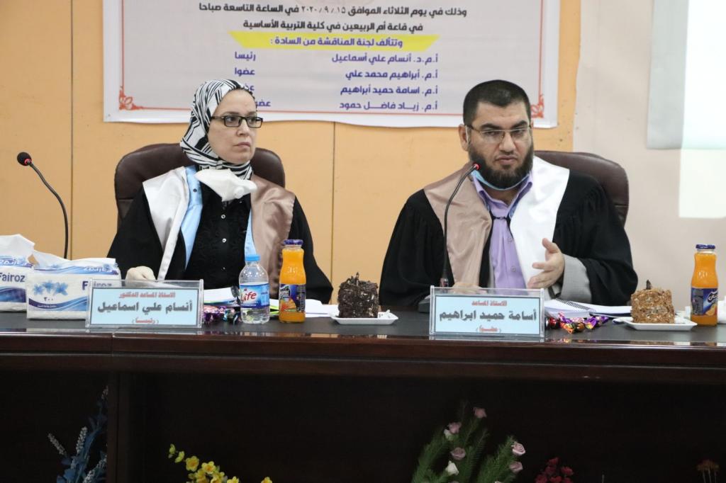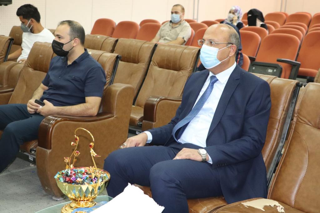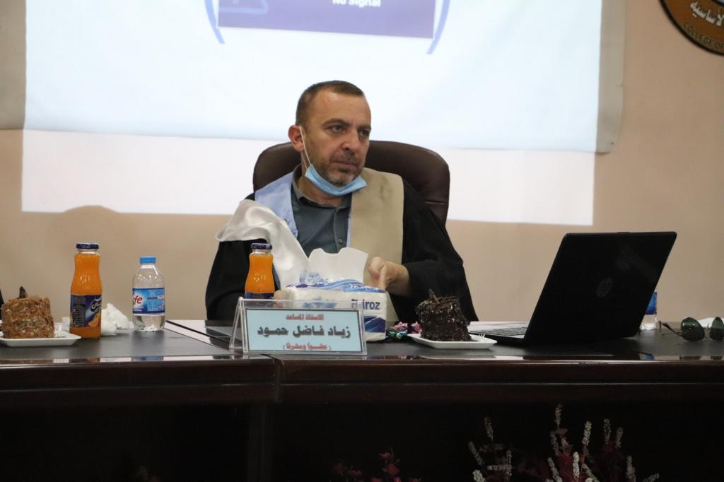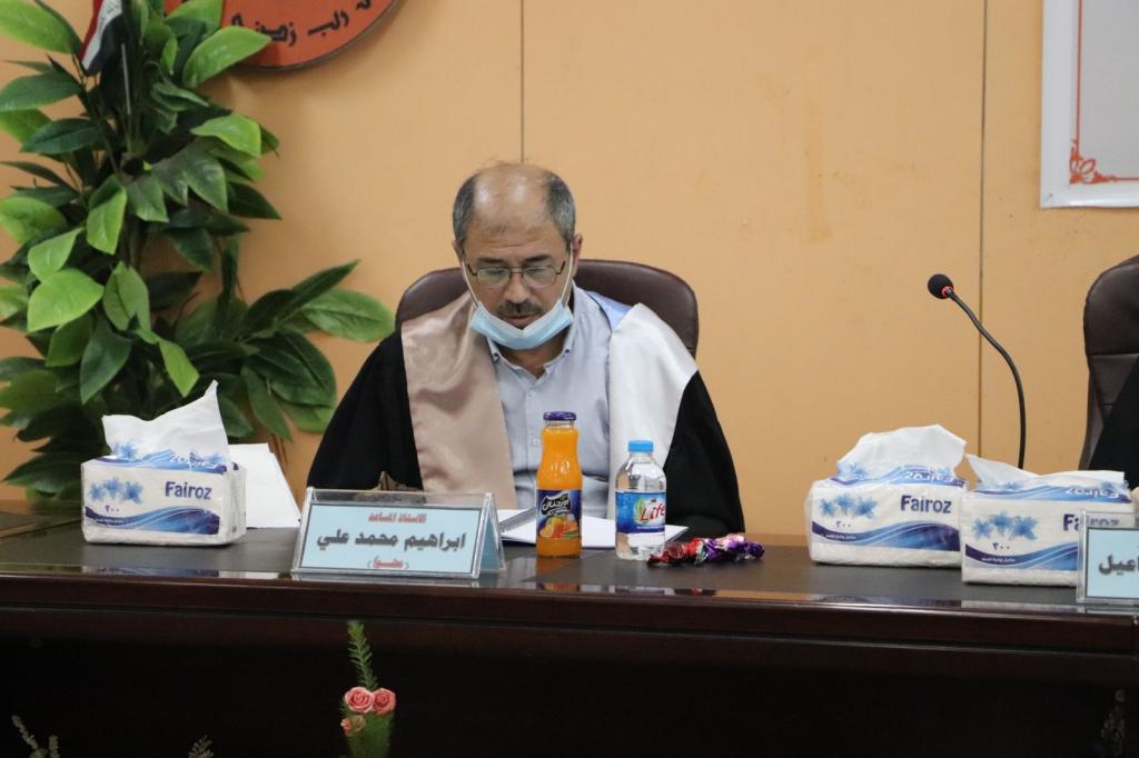 السيد عميد كلية التربية الاساسية يحضر مناقشة طالب الماجستير احمد ضاري كرجي من قسم اللغة الانكليزية في الكلية