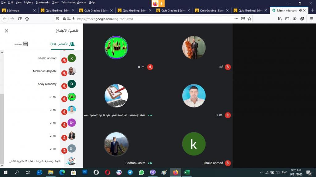 عبر الفضاء الالكتروني وبإشراف مباشر من قبل الاستاذ المساعد الدكتور صفاء الدين عبد الله سليمان عميد كلية التربية الاساسية أدى طلبة كلية التربية الاساسية وعبر منصة إدمودو اليوم الاثنين الموافق 21/9/2020 يومهم الثاني من الامتحانات النهائية الدور الثاني للسنة الدراسية 2019 – 2020 ، وتم اللقاء مباشرة مع الطلبة أثناء الامتحان من قبل السيد العميد والاستاذ الدكتور محمد توفيق عثمان معاون العميد للشؤون العلمية والدكتور طه محمد تقي مدير تسجيل الكلية من خلال منصة Zoom الالكترونية وذلك للتأكد من دخول جميع الطلبة الى الامتحان وتذليل المشكلات التي تواجههم خلال الامتحان .