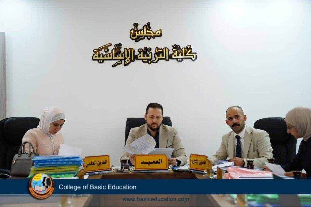 بحضور السيد عميد الكلية الأستاذ المساعد الدكتور محمد يونس صالح الجريسي والسيد معاون العميد للشؤون العلمية الاستاذ المساعد الدكتور احمد رعد ابراهيم والسيد معاون العميد للشؤون الإدارية الدكتور عمار بدر الهلالي،