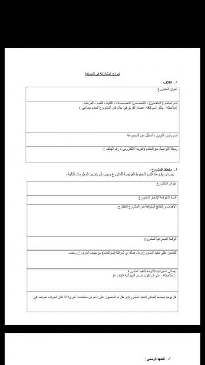 * اخر موعد لتقديم مسودة المشاريع : يوم الخميس 13 حزيران 2019