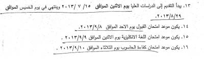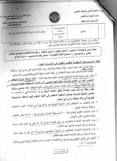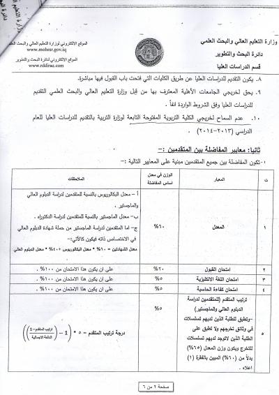 بدء يوم الاثنين الموافق 15/7/2013 التقديم للدراسات العليا في كلية التربية الاساسية ويستمر لغاية يوم الخميس الموافق 29/8/2013 ، وتشمل دراسة الماجستير التخصصات التالية :