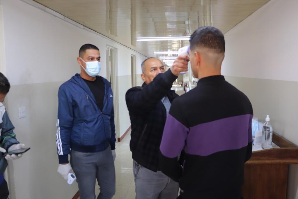 تفقد السيد عميد كلية التربية الأساسية الأستاذ المساعد الدكتور صفاء الدين عبد الله سليمان ومعاوني العميد العلمي والإداري الأستاذ الدكتور محمد توفيق عثمان آل حسين والدكتور محمد يونس صالح الجريسي يوم الاحد الموافق 15/11/2020 الساحات والقاعات الرياضية التي تم فيها الفحص وبدء الطلبة المتقدمين الى قسم التربية البدنية وعلوم الرياضة بالفحص الطبي باشراف رئيس القسم الأستاذ الدكتور قصي حازم محمد حيث قام تدريسيو القسم بفحص الطلبة المتقدمين للتأكد من خلوهم من مرض كورونا قبل القيام بالفحص الطبي والرياضي .