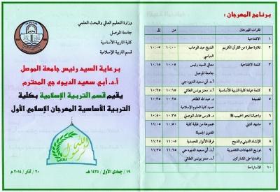بحضور السيد رئيس الجامعة أ.د. ابي سعيد الديوه جي ، أقام قسم التربية الاسلامية في كلية التربية الاساسية المهرجان الاسلامي الاول تحت شعار ( لرسول الله ننتمي )وذلك يوم الخميس الموافق 20/3/2014 .
