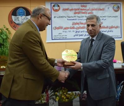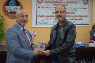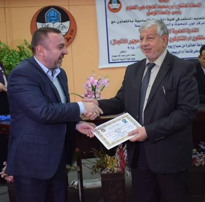 برعاية أ.د. ابي سعيد الديوه جي رئيس جامعة الموصل وحضور أ.د. اكرم البدو مساعد رئيس الجامعة للشؤون الادارية وباشراف مباشر من قبل أ.م.د. صفاء الدين عبد الله سليمان عميد كلية التربية الاساسية ومعاوني العميد العلمي والاداري أ.د. محمد توفيق عثمان و أ.م.د. صالح محمد حسن ارديني و أ.م.د. نشوان محمود الصفار مسؤول وحدة التعليم المستمر في كلية التربية الاساسية وبحضور اعضاء مجلس الجامعة واعضاء مجلس الكلية وعدد كبير من التدريسيين في الكلية وكليات جامعة الموصل وتحت شعار ( البحث العلمي أداة الاكاديمي لبناء الوطن ) اقامت كلية التربية الاساسية / وحدة التعليم المستمر وبالتعاون مع مركز نون للبحوث والدراسات المتخصصة الندوة العلمية الموسعة بعنوان ( الباحثون المستقلون أم المشتركون الفعالون تحت مجهر الانجاز ) وذلك بالساعة العاشرة من يوم الاحد الموافق 30/12/2018 .استهلت الندوة بتلاوة من القرآن الكريم ثم كلمة السيد عميد كلية التربية الاساسية الدكتور صفاء الدين عبدالله سليمان رحب فيها بالضيوف مشيرا الى اهمية دور البحوث العلمية في تحقيق الانجازات على مختلف الاصعدة وشكر القائمين على اعمال هذه الندوة ، وافتتحت بعدها الجلسة الاولى التي ترأسها الاستاذ الدكتور سعد فاضل عبدالقادر ومقررها الدكتور خالد احمد عيدان واستهلت الجلسة الاولى بمحاضرة نوعية للاستاذ الدكتور احمد قاسم الجمعة ، و بعدها قام السيد عميد الكلية بتسليم السيد رئيس الجامعة درع الكلية والى السيد مساعد رئيس الجامعة العلمي والاداري ، ووزع السيد رئيس الجامعة الشهادات التقديرية الخاصة بالندوة الى السيد عميد الكلية ومعاونيه والسيد مسؤول وحد التعليم المستمر , فيما ترأس الجلسة الثانية الدكتور أنور علي صالح ومقررها الدكتور عمار بدر فتاح القي فيها ثلاث محاضرات ، ا.د. عبد الرزاق ياسين و الدكتور غانم سعيد الطائي كما افتتح السيد رئيس الجامعة معرضا ثقافيا وفنيا بمشاركة بعض المدارس الاهلية ( مدرسة الارقم الاهلية / مدرسة الفردوس الاهلية / مدرسة الاوائل الاهلية ) ومعرضا للمأكولات من اعداد طالبات الكلية ، وافتتح سيادته جزءاً من عمادة الكلية بعد اعماره مشيداً بالجهود المبذولة في ذلك متمنياً ان يتم اعمار بقية اجزاء العمادة.وقام أ.د. محمد توفيق عثمان بتوزيع الدروع على المشاركين وعلى المتميزين من التدريسيين في الكلية وعلى الاكاديميين البارزين والقدامى في الجامعة .