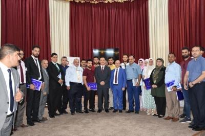 تكريم تدريسيين من كلية التربية الاساسية بشهادة شكر وثناء من قبل السيد رئيس الجامعة