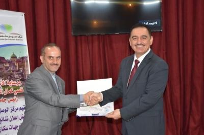 تم تكريم كل من م.د. عمر غياث و م.م. ليث حمدي عبدالله الطالب التدريسيين في قسم العلوم العامة كلية التربية الاساسية على شهادة شكر وثناء من قبل الأستاذ الدكتور قصي كمال الدين الاحمدي رئيس جامعة الموصل يوم الاربعاء 24/تموز/2019م خلال حفل اعلان نتائج المسح الميداني حول توجهات سكان مدينة الموصل بخصوص اعمار مدينة الموصل القديمة .لمساهمتهما التطوعية في المسح الميداني للمدة 27/4- 23/5/2019م .خلال حفل اعلان نتائج المسح الميداني ، الذي نفذ بالتعاون بين جامعة الموصل ومركز الموصل للثقافة والعلوم و مؤسسة بيت الخبرة العراقي .