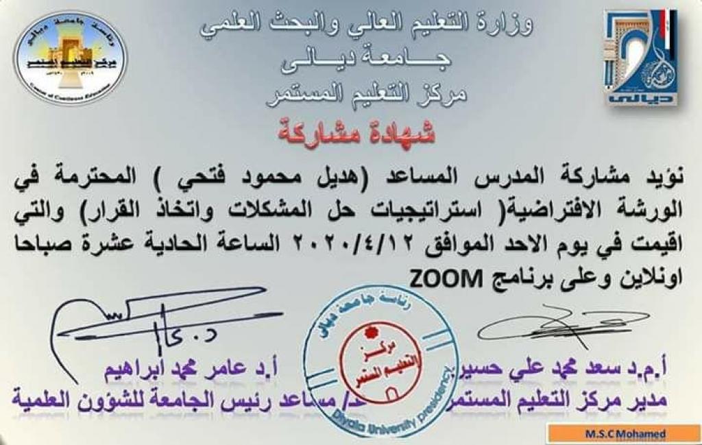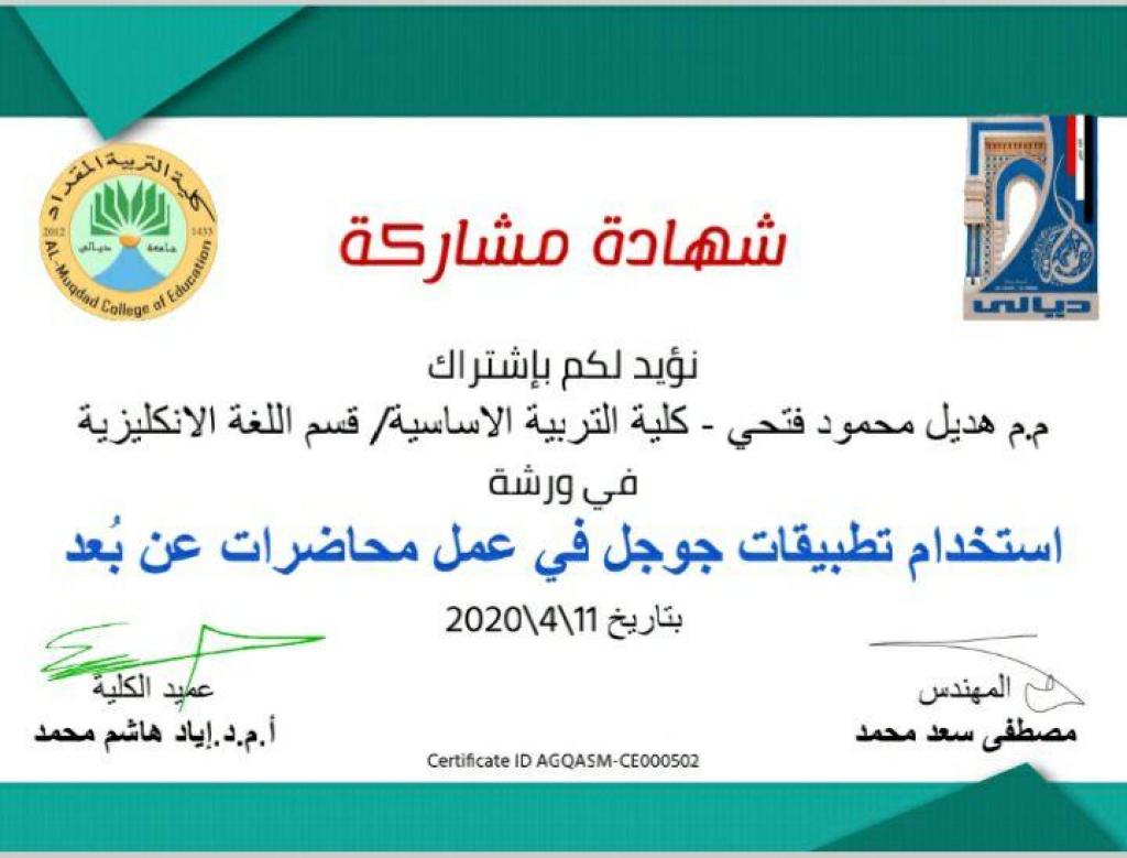حصول عدد من محاضري الدراسة المسائية في كلية التربية الاساسية على شهادة دولية