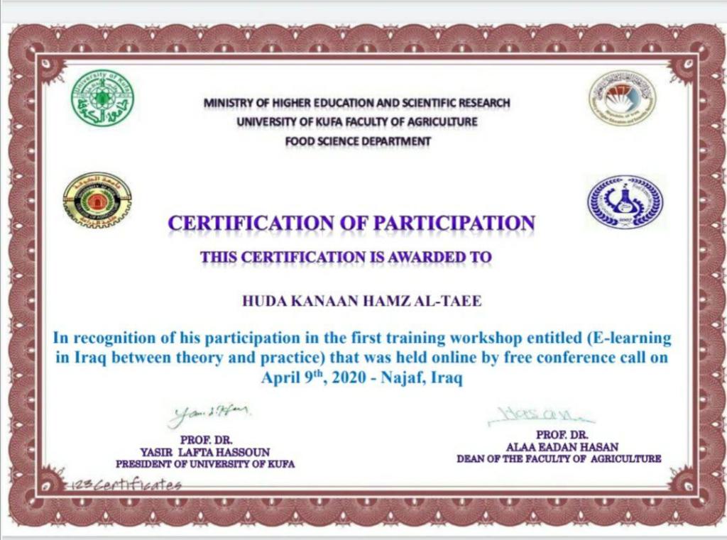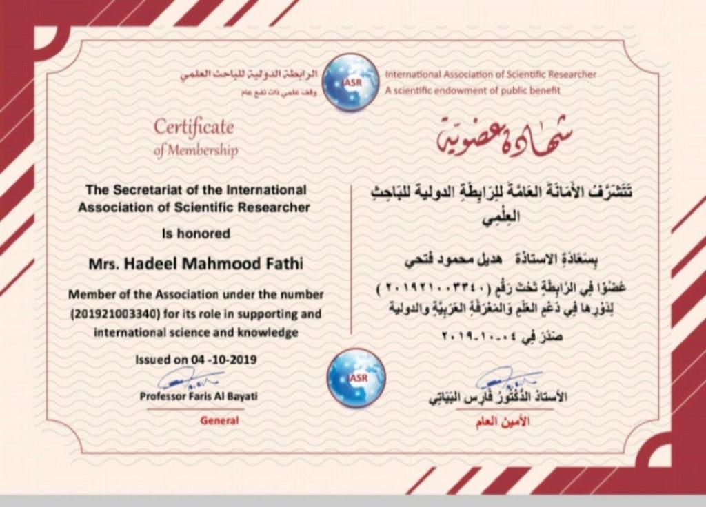حصل السادة المحاضرين في الدراسة الصباحية والمسائية في كلية التربية الاساسية التالية اسماءهم في ادناه على شهادات دولية :