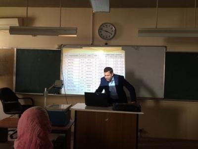 ضمن النشاطات العلمية لقسم العلوم العامة للعام الدراسي 2017- 2018 ، تم عقد حلقة دراسية بعنوان ( تحضير وتشخيص بعض المعقدات مثل Ni(11) ، و pd (11) ، و pt (11) للتدريسي د. انور محمد امين وذلك بالساعة 12 ظهرا من يوم الخميس الموافق 1/3/2018 .