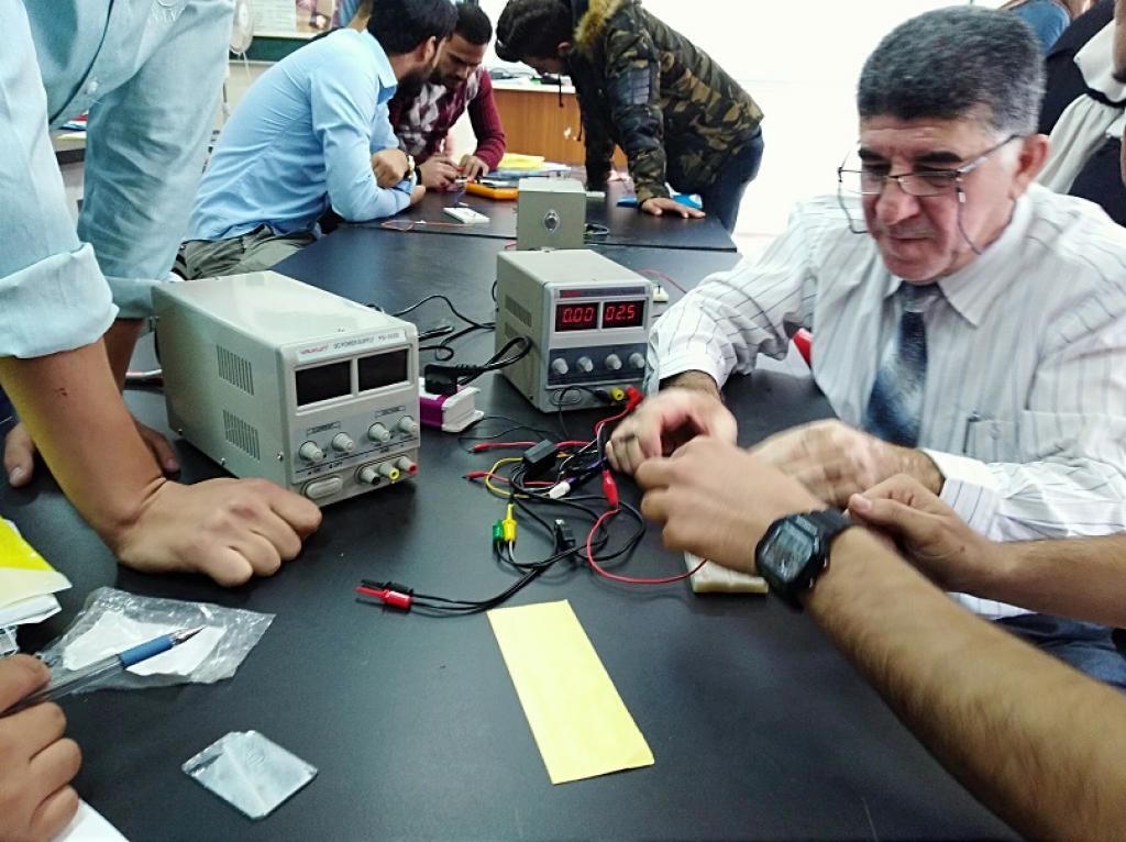 دعما للمشروع الفائز للخريج ( عماد علي فتحي ) وضمن المشاريع الفائزة بالمسابقة التي نظمتها شعبة التأهيل والتوظيف والمتابعة وبالتعاون مع منظمة Expertise France الحكومية الفرنسية بدأ فرع الفيزياء / قسم العلوم العامة في كلية التربية الاساسية بإقامة دورة تدريبية بعنوان ( الالكترونيات البسيطة واستخداماتها ) للمجموعة الاولى من طلبة فرع الفيزياء وثانوية عامر عبد الله بواقع عشرين طالب وذلك يوم الاربعاء الموافق 13/11/2019 . وفي مختبر الألكترونيك في قسم العلوم العامة في الكلية.