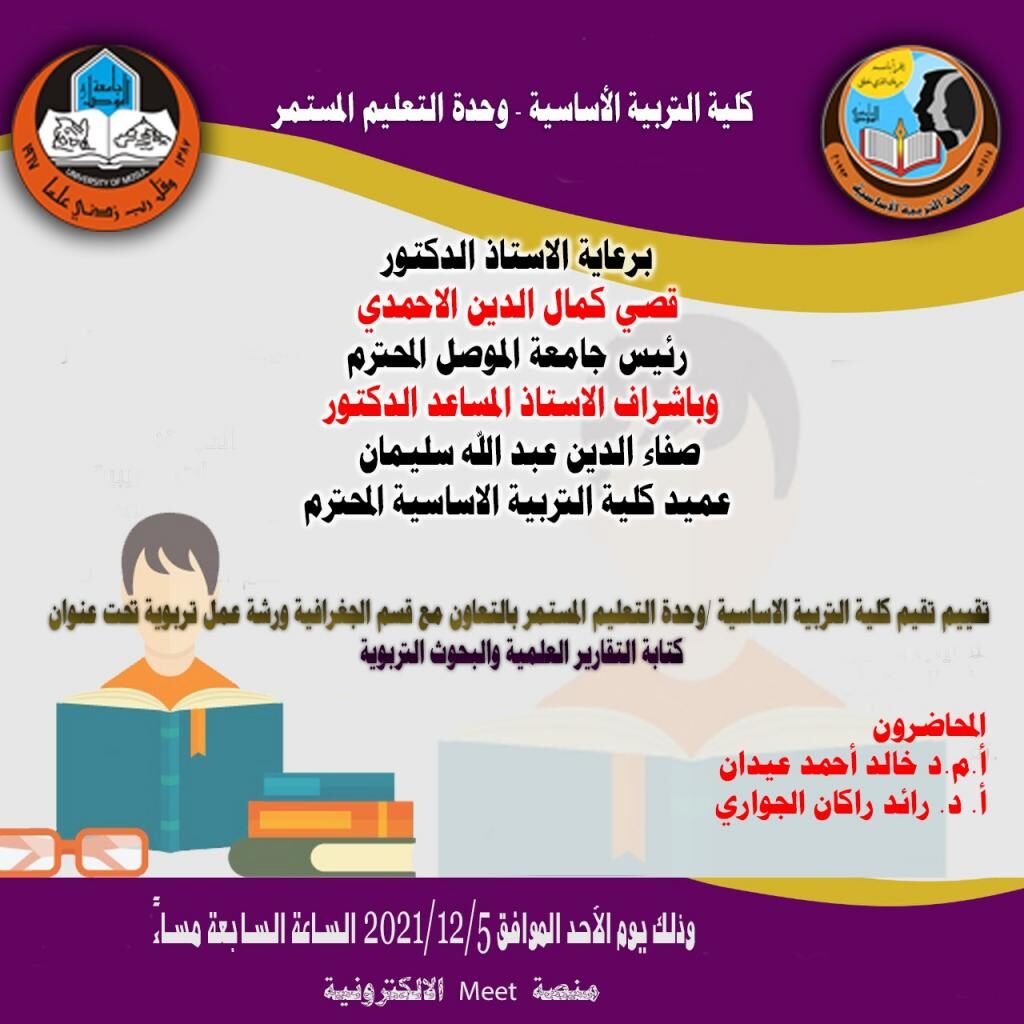 ناقش قسم التاريخ في كلية التربية الأساسية بجامعة الموصل رسالة الماجستير للطالب ( محمود عبد الرحمن احمد الجبوري ) عن رسالته الموسومة ( السيرة النبوية من خلال كتاب الدُرُ الثمين في أخبار سيد المرسلين والخلفاء الراشدين لإبن أيبك الدواه داري ( ت 736هـ ) ) وعلى قاعة ام الربيعين صباح يوم الخميس الموافق 2/12/2021 ، حضر جانبا منها السيد عميد الكلية الأستاذ المساعد الدكتور صفاء الدين عبد الله سليمان ومعاوني العميد العلمي والإداري الأستاذ المساعد الدكتور عاصم عادل صباح والأستاذ المساعد الدكتور محمد يونس صالح الجريسي ، تألفت لجنة المناقشة من السادة (أ.د. نضال مؤيد مال الله ) كلية التربية للعلوم الانسانية / جامعة الموصل رئيس لجنة المناقشة وعضويها (أ.د. ممدوح سالم محمد ) كلية التربية للبنات / جامعة تكريت و ( أ.م.د. ادريس سليمان محمد) كلية التربية الاساسية / جامعة الموصل ( أ.د. فتحي سالم حميدي ) عضواً ومشرفاً .