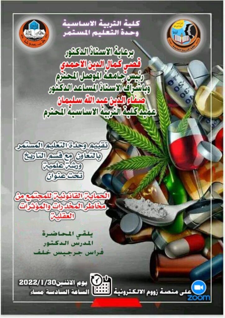 وحدة التعليم المستمر في كلية التربية الأساسية تقيم ورشة عمل عن مخاطر المخدرات
