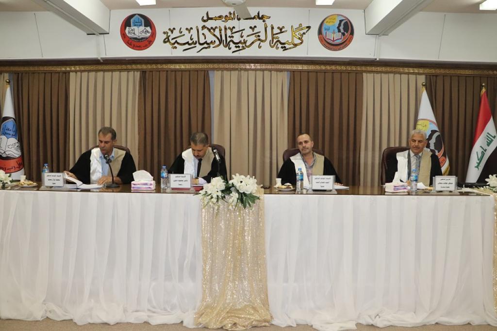 ناقش قسم التربية التربية البدنية وعلوم الرياضة في كلية التربية الاساسية بجامعة الموصل رسالة الماجستير الموسومة ( الحضور الوجودي وعلاقته بقلق المنافسة الرياضية لدى لاعبي اندية محافظة نينوى بكرة القدم ) للطالب علي حامد سليمان مطلك من قسم التربية البدنية وعلوم الرياضة صباح يوم الاثنين الموافق 23 اب 2021 وعلى قاعة ام الربيعين ، حضر جانبا منها السيدين معاوني عميد الكلية العلمي والإداري الأستاذ الدكتور محمد توفيق عثمان والأستاذ المساعد الدكتور محمد يونس صالح الجريسي ، . وترأس لجنة المناقشة أ.د. ثامر محمود ذنون وعضوية أ.م.د. سعيد نزار سعيد / و ا.م.د. احمد هشام احمد و أ.د. منهل خطاب سلطان عضواً ومشرفاً .
