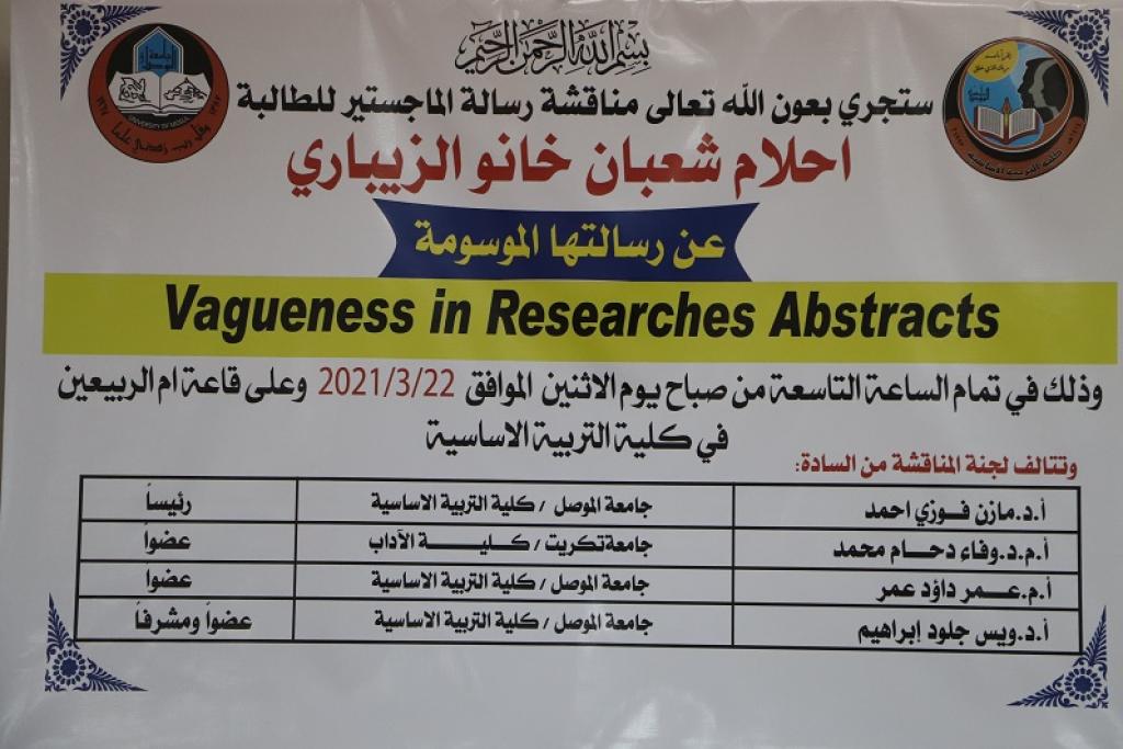 رسالة ماجستير في قسم اللغة الانكليزية عن الغموض في مستخلصات البحوث