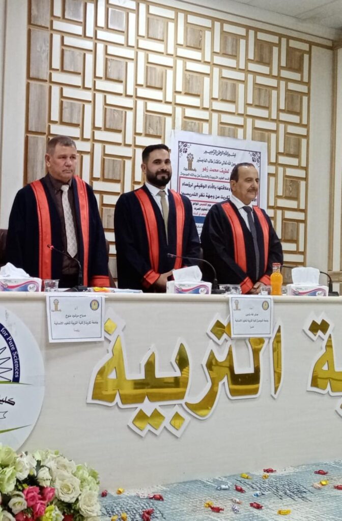 ناقش قسم اللغة العربية رسالة ماجستير عن (الفضاء في رواية (يوم غابت الشمس) لغانم خليل) يوم الاحد الموافق 17/7/2022 حضر جانبا منها الاستاذ المساعد الدكتور صفاء الدين عبد الله سليمان عميد كلية التربية الاساسية ومعاوني العميد العلمي والإداري الأستاذ المساعد الدكتور عاصم عادل صباح والأستاذ المساعد الدكتور محمد يونس صالح وعدد من تدريسيي الكلية.تناولت الرسالة التي تقدم بها الطالب محمد داؤد هندي فرج من قسم اللغة العربية في الكلية اثبات استقراء الأدبيات التي تتناول التقنيات السردية أنّ الدراسات أولت اهتماماً كبيراً بالفضاء؛ بوصفه قالب العمل الروائي ومحوره الذي يقوم عليه، إذ يشكّل الفضاء حيوية الرواية وديمومتها من حيث الزمن والمكان اللذين يعرضان بحسب الرؤية التي يقدمها الكاتب، فهو الوعاء الجامع للعناصر السردية كافة التي يقوم عليها النص الروائي. وكان الهدف منها إبراز الفضاء في رواية (يوم غابت الشَّمس) للكاتب الموصلي غانم خليل من حيث (الزمن، والمكان، والرؤية) في تقديم صورة حيّة لحياة الموصل في سرد حكائي مشوّق يحيل القارئ على أحداث قديمة تكتسب حيوتها من الصراعات التي يعرضها على مستوى هذه العناصر الثلاثة، إذ بدا الفضاء في استهلال الرواية وعرضها وخاتمتها بدالات زمنية ومكانية متعددة ومتنوعة، لذا جاء اختيار هذه الرواية لدراسة الفضاء فيها.وتألفت لجنة المناقشة من السادة:1- أ.د. سعد جرجيس سعيد رئيسا2- أ.م.د. فائزة محمد محمود عضوا3- ا.م.د. سالم نجم عبد الله عضوا4- أ.د. نبهان حسون عبد الله عضوا ومشرفا
