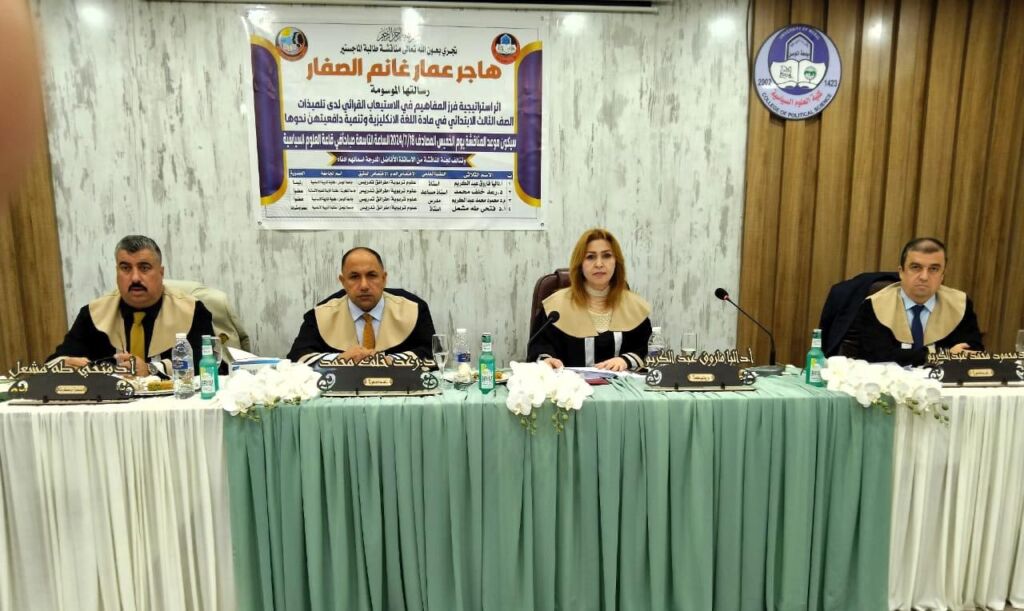 ناقشت كلية التربية الأساسية بجامعة الموصل رسالة ماجستير عن (أثر الأنشطة التعليمية في اكتساب بعض المهارات اللغوية لدى تلاميذ الصف الرابع الابتدائي وتنمية التفاعل الاجتماعي لديهم)، وذلك في يوم (الخميس) الموافق 18/ 7 /2024 وعلى قاعة (أم الربيعين) في الكلية.