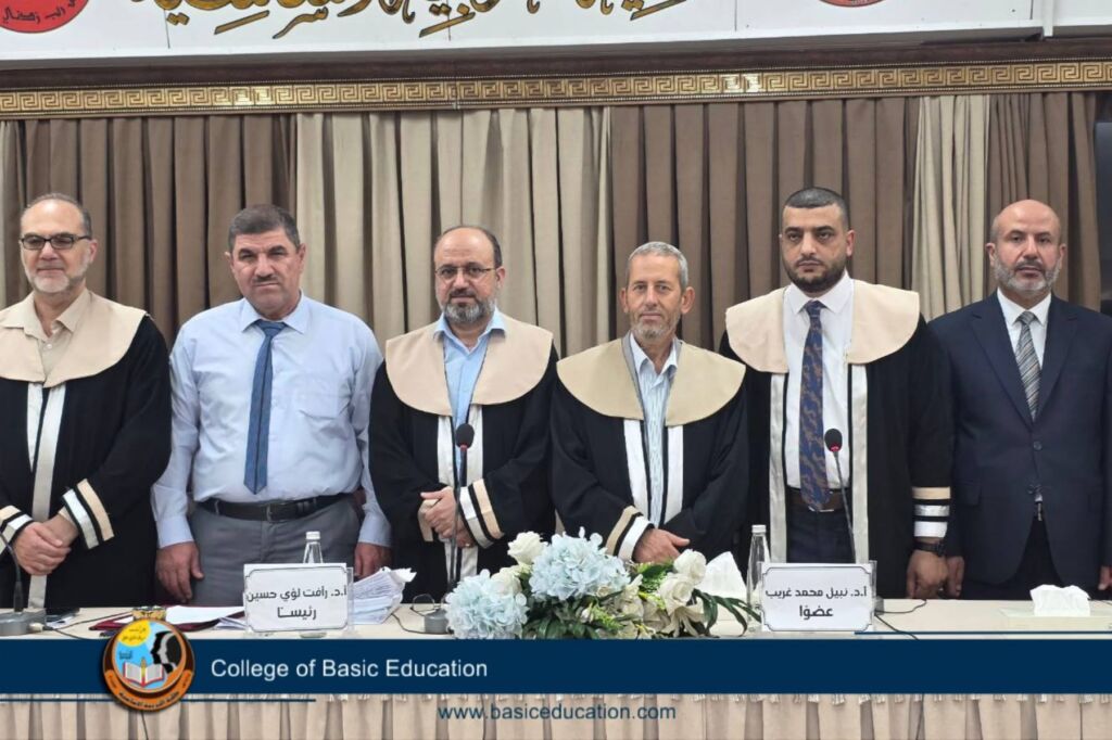 ناقشت كلية التربية الأساسية بجامعة الموصل رسالة ماجستير عن (دراسة مقارنة بين أطفال التربية الخاصة والاسوياء في عدد من أهم المهارات الحركية الأساسية والمتغيرات الوظيفية بأعمار (6-9) سنة)، وذلك في يوم الخميس الموافق 31/ 7/ 2025 وعلى قاعة (الحدباء) في الكلية. تناولت الرسالة التي تقدم بها الطالب/ (علي محمد اديب الدوسكي) قسم (التربية البدنية وعلوم الرياضة)، دراسة المهارات الحركية للأطفال الاسوياء والأطفال التربية الخاصة فضلاً عن دراسة عدد من المتغيرات الوظيفية للاطفال والمقارنة بينهما، كما أنها تسلط الضوء على أهمية الدمج الفعال بين الأنشطة البدنية والاحتياجات التعليمية للأطفال التربية الخاصة، مما يعزز من جودة حياتهم وصحتهم العامة……..