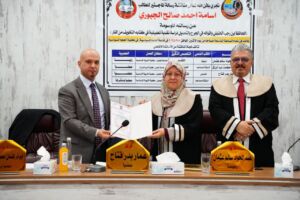 ترأس لجنة المناقشة الأستاذ الدكتور عبد الجواد سالم عثمان وعضوية كل من الأستاذ المساعد الدكتورة زينب حكمت عبد الرزاق والدكتور عمار بدر فتاح والأستاذ المساعد الدكتور أبو ذر لقمان محمد أمين الحبار عضواً ومشرفاً..