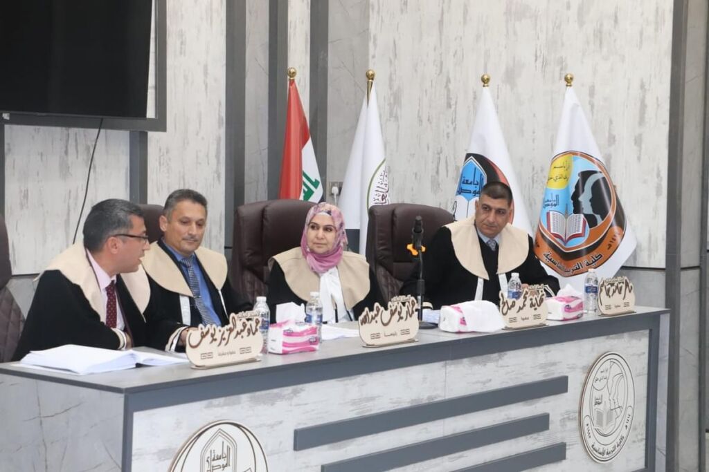 ترأس لجنة المناقشة الاستاذ الدكتور عامر باهر الحيالي و عضوية كل من الاستاذ الدكتورة عائشة خضر احمد ، والاستاذ المساعد الدكتورة سلوى يونس خضر وبإشراف الاستاذ الدكتورة زهراء سعد الدين شيت .