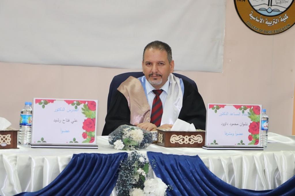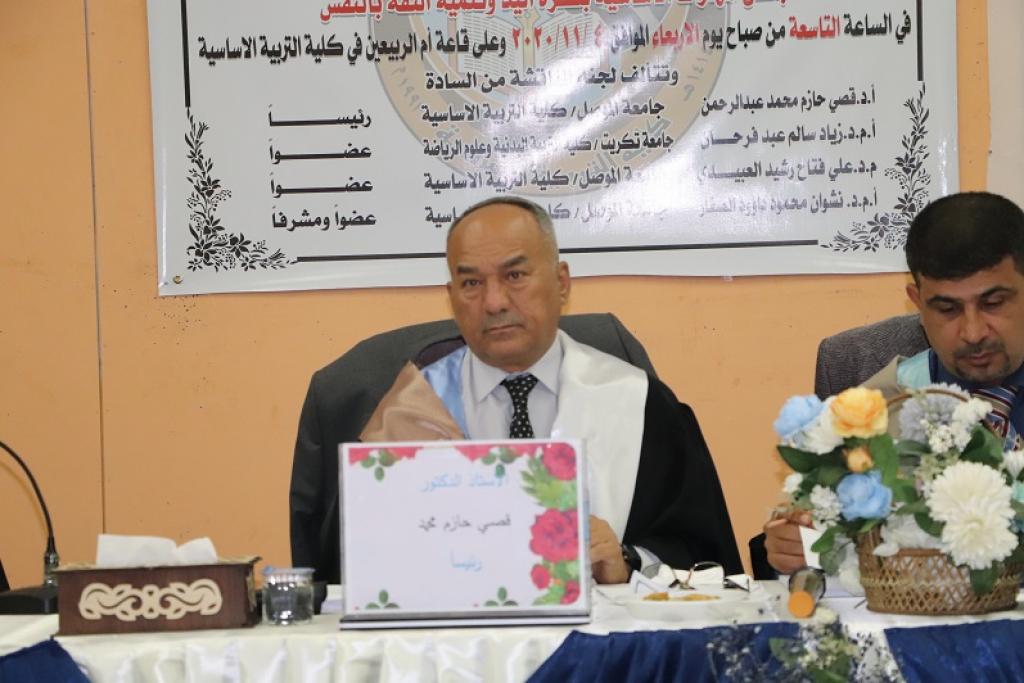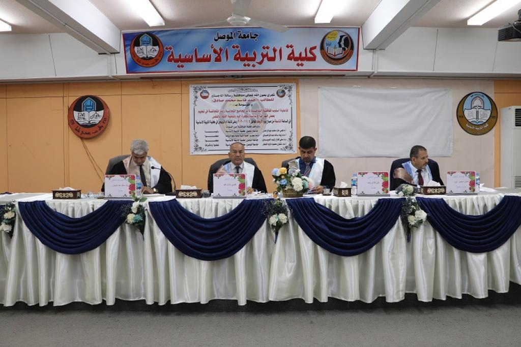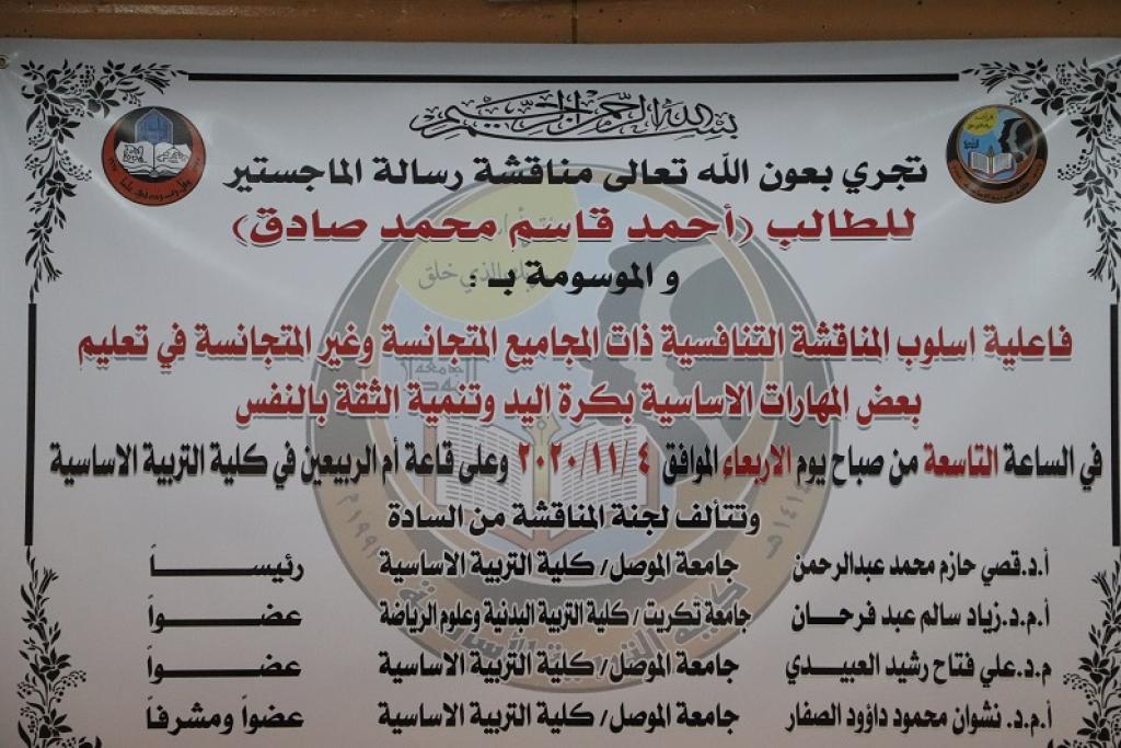 رسالة ماجستير للطالب ( احمد قاسم محمد صادق ) من كلية التربية الاساسية تناقش ( فاعلية أسلوب المناقشة التنافسية ذات المجاميع المتجانسة وغير المتجانسة )