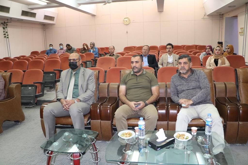السيد عميد كلية التربية الاساسية يحضر مناقشة طالب الماجستير محمود شاكر محمود من قسم التربية البدنية وعلوم الرياضة