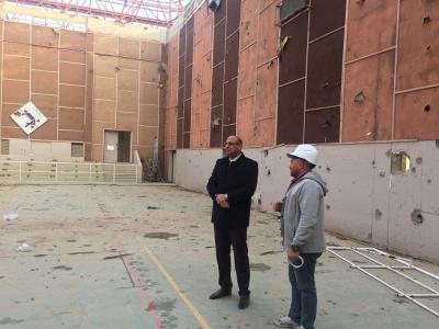 زار أ.م.د. صفاء الدين عبد الله سليمان عميد كلية التربية الاساسية القاعة الرياضية الخاصة بالكلية اثناء اعمارها في المرحلة الاولى بالساعة التاسعة صباح يوم السبت الموافق 26/1/2019 واطلع على سير العمل بجميع تفاصيله بعد لقاءه رئيس المهندسين المشرف على اعمار القاعة واستمع الى جميع المقترحات والآراء التي سيتم تنفيذها في المرحلة الثانية .