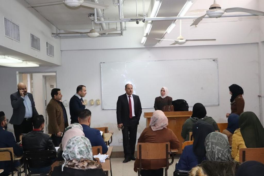 من خلال الزيارة التفقدية التي قام بها الاستاذ الدكتور صالح محمد حسن ارديني عميد كلية التربية الاساسية لاقسام الكلية كافة العلمية والانسانية بالإضافة الى قسم رياض الاطفال الخاص لطالبات الكلية والقسم الحديث لطلبة التعليم الاساس , تم اعطاء التوجيهات لرؤساء الاقسام والمقررين بتوجيه الطلبة للمراحل النهائية للكورس الدراسي الاول والحرص على انهاء الامتحانات الفصلية للأخذ بنظر الاعتبار بقرب موعد الامتحانات النهائية للكورس الدراسي الاول , مع التنبيه على الالتزام بالأنظمة والقوانين التي اكدت عليها وزارة التعليم العالي والبحث العلمي .