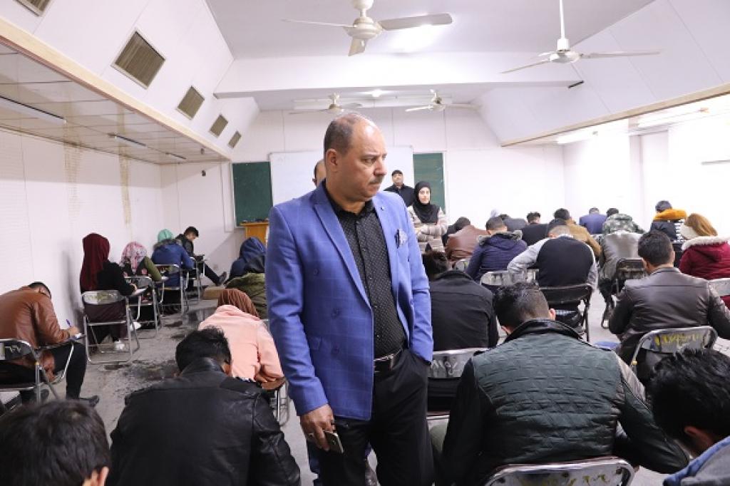 تفقد الاستاذ الدكتور صالح ارديني عميد كلية التربية الاساسية صباح يوم الاحد الموافق 9/2/2020 الاقسام العلمية في الكلية واللجان الامتحانية واطلع على سير الاعمال فيها وتفقد السيد العميد ايضا القاعات الامتحانية في جميع الاقسام .حيث وجه ببعض النقاط المهمة تخص الدرجات والدفاتر الامتحانية .