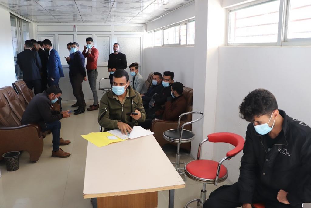 زار السيد عميد كلية التربية الأساسية الأستاذ المساعد الدكتور صفاء الدين عبد الله سليمان ومعاوني العميد العلمي والإداري الأستاذ الدكتور محمد توفيق عثمان آل حسين والدكتور محمد يونس صالح الجريسي الى قسم تسجيل الكلية والتقى الدكتور طه محمد تقي مسؤول التسجيل وتفقد السيد العميد يوم الاحد الموافق 15/11/2020 الية عمل القسم من حيث استقبال الطلبة المتقدمين للدراسة المسائية والتقديم المباشر.