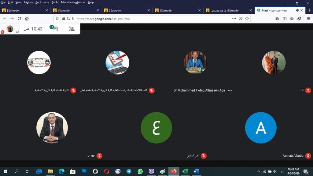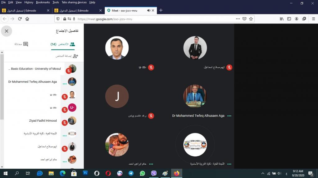 بإشراف مباشر من قبل أ.م.د. صفاء الدين عبد الله سليمان عميد كلية التربية الاساسية وبإشراف وإدارة الكترونية عبر الفضاء الالكتروني لمنصة إدمودو للاستاذ الدكتور محمد توفيق عثمان معاون العميد للشؤون العلمية أدى طلبة كلية التربية الاساسية اليوم الاحد الموافق 20/9/2020 يومهم الاول من الامتحانات النهائية – الدور الثاني وبإشراف جميع اللجان الامتحانية في الاقسام العلمية واللجنة المركزية في العمادة ، وفي بداية الامتحان تم اللقاء مع الطلبة عبر منصة Meet والتواصل معهم للتأكد من حضور ودخول جميع الطلبة المشمولين بالامتحان وتذليل كافة الصعوبات والعقبات التي تواجه الطلبة للانضمام الى الامتحان .