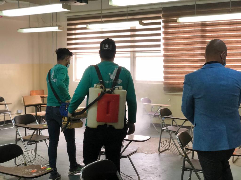 بتوجيه من الأستاذ المساعد الدكتور صفاء الدين عبد الله سليمان عميد كلية التربية الأساسية وباشراف مباشر من قبل الأستاذ المساعد الدكتور محمد يونس صالح الجريسي معاون العميد للشؤون الإدارية واستكمالا لتحضيرات الامتحانات الحضورية باشرت عمادة الكلية يوم الخميس 8/4/2021 بتعفير الكلية وذلك برش المبيدات الكيمياوية في غرف العمادة وجميع القاعات الدراسية والاقسام العلمية والشعب والوحدات الإدارية وذلك حفاظاً على سلامة جميع منتسبي وطلبة الكلية من انتقال الامراض المعدية حفظ الله الجميع منها .