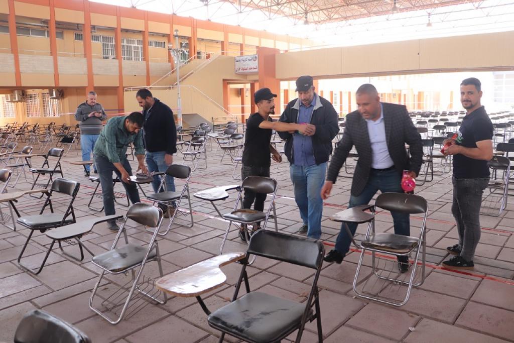 باشراف مباشر من قبل السيد عميد كلية التربية الأساسية الأستاذ المساعد الدكتور صفاء الدين عبد الله سليمان ومعاونيه العلمي والإداري الأستاذ الدكتور محمد توفيق عثمان والأستاذ المساعد الدكتور محمد يونس صالح الجريسي تم يوم الاربعاء الموافق 31/3/2021 اكمال جميع تحضيرات الامتحانات الحضورية للاختبار النهائي للفصل الأول الدور الأول للعام الدراسي 2020 – 2021 والذي سيكون موعده يوم 11/4/2021 ، وتم بحضور السادة رؤساء الأقسام العلمية وأعضاء اللجان الامتحانية في الكلية استكمال جميع الأمور الإدارية للقاعات الدراسية في الأقسام العلمية والقاعة الرئيسية في الكلية مع مراعاة الجانب الصحي في توزيع الطلبة .