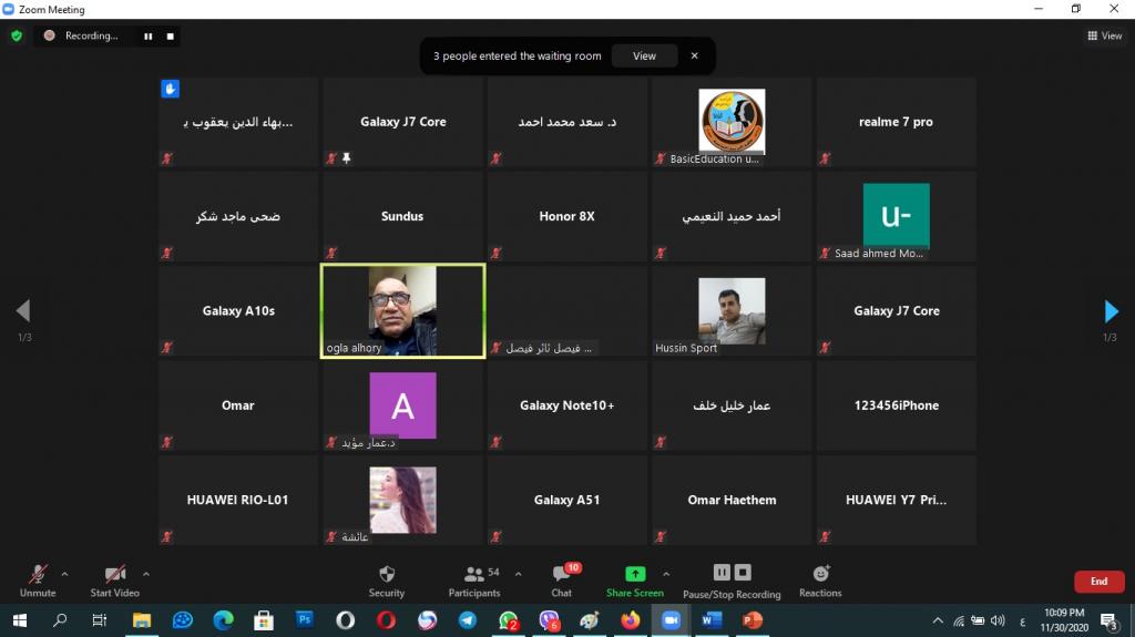 برعاية الأستاذ الدكتور قصي كمال الدين الاحمدي رئيس جامعة الموصل المحترم وبإشراف مباشر من قبل الأستاذ المساعد الدكتور صفاء الدين عبد الله سليمان عميد كلية التربية الأساسية المحترم وبإدارة الكترونية من قبل الأستاذ الدكتور محمد توفيق عثمان معاون العميد للشؤون العلمية أقامت وحدة التعليم المستمر في الكلية يوم الاثنين الموافق 30/11/2020 المحاضرة الثانية من الدورة التدريبية الافتراضية تحت عنوان ( كيفية كتابة بحوث التخرج للمرحلة الرابعة ) عبر منصة Zoom الالكترونية مخصصة للتدريسيين والطلبة جميعاً ، تناولت الدورة الأسباب التي دعت الجامعات لاقرار بحث التخرج وخطوات كتابة بحث التخرج والأمور التي يجب مراعاتها عند اختيار الموضوع وعناصر خطة البحث وعنوان البحث وصفحة العنوان والآية القرآنية والاهداء والشكر والتقدير وملخص وفهرس البحث وفهرس الجداول والرسومات والصور .كان الهدف من الدورة هو تعريف طلبة المرحلة الرابعة كيفية كتابة المقدمة التعريفية للبحث وكتابة أهمية ومشكلة الموضوع وأهداف البحث وأسئلة بحث التخرج أو فرضياته والمصطلحات المستخدمة في البحث وحدود البحث . تمت المحاضرة من قبل الأستاذ المساعد الدكتور احمد حميد النعيمي التدريسي في قسم التربية الإسلامية والأستاذ الدكتور عكلة سليمان الحوري التدريسي في قسم التربية البدنية وعلوم الرياضة في الكلية تم التطرق الى شرح كامل عن مفاصل وجوانب والنقاط المهمة والاساسية في كتابة بحث التخرج لطلبة المرحلة الرابعة واستقبل الأسئلة والمداخلات من قبل الحضور وتمت الإجابة عليها من قبل الدكتور الحوري والدكتور احمد حميد إجابة كاملة ومفصلة .