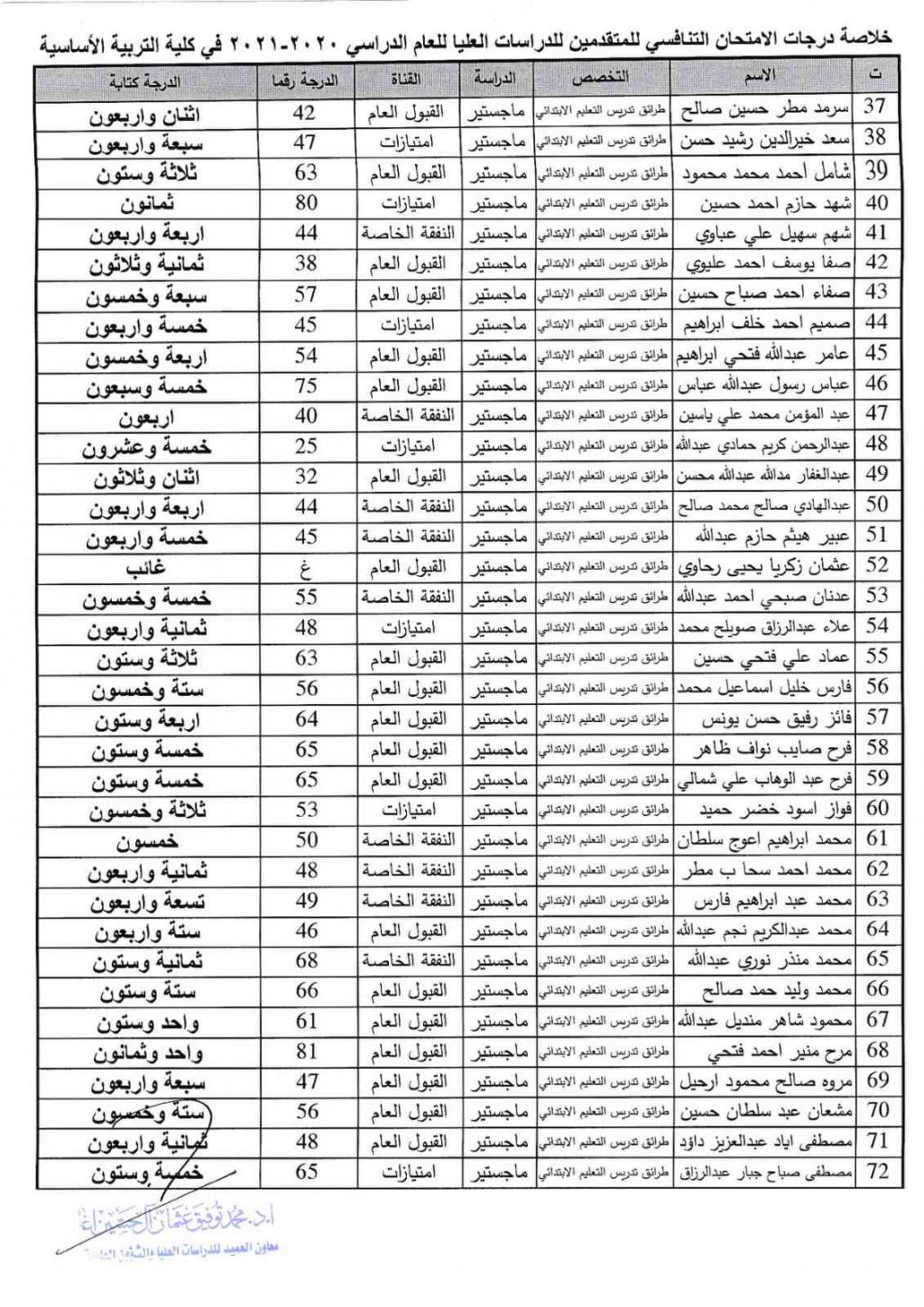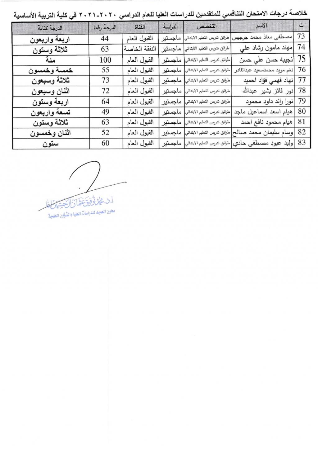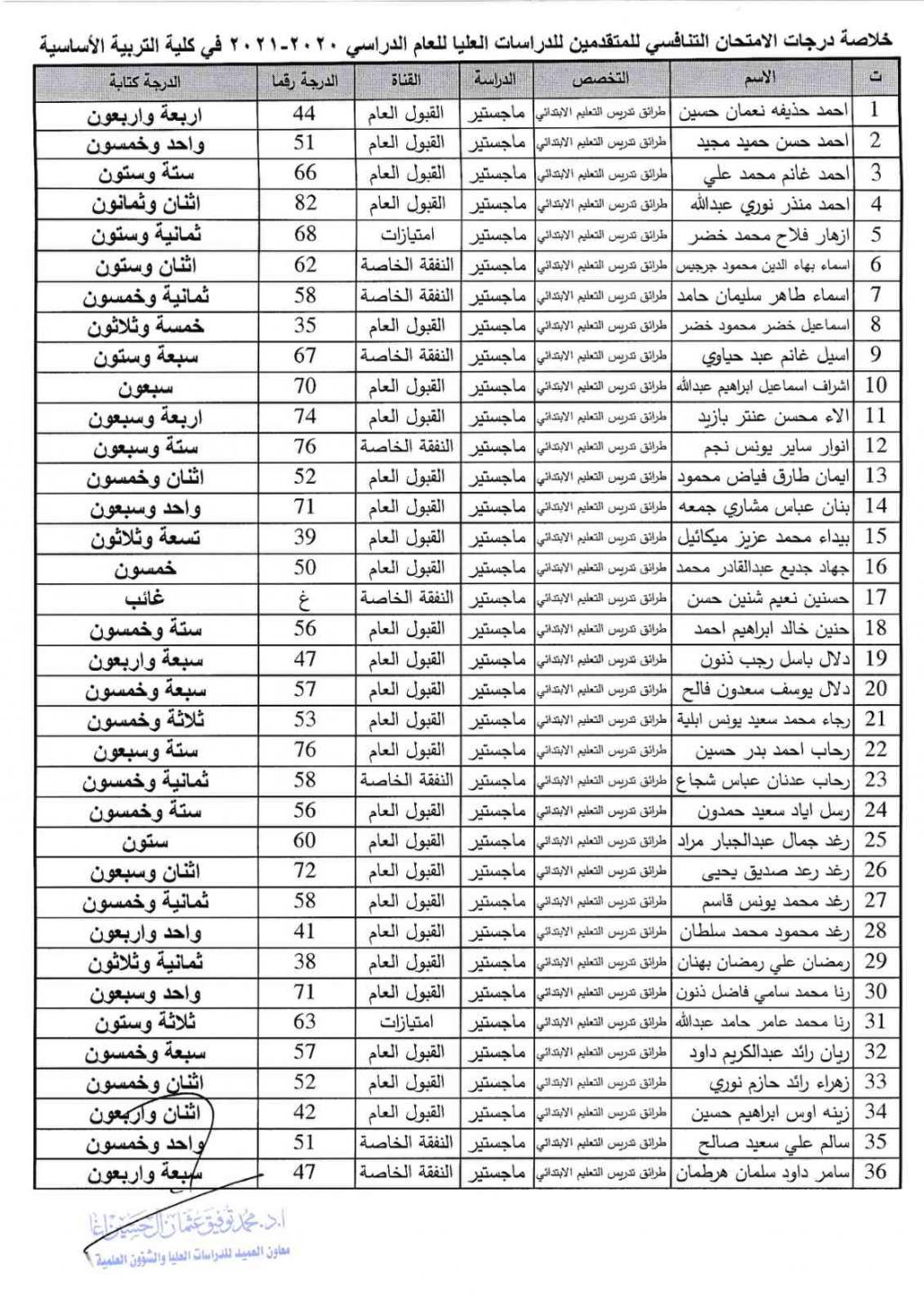 تم بحمد الله اكمال درجات الامتحان التنافسي من قبل عمادة كلية التربية الأساسية للطلبة المتقدمين على الدراسات العليا للعام الدراسي 2020-2021 .. والبالغ عددهم (381) موزعين على سبع اختصاصات مختلفة في الكلية ، وعلى الطلبة الراغبين بالاعتراض تقديم اعتراضاتهم يوم الاربعاء الموافق 21/10/2020 .. تمنياتنا لجميع الطلبة بالموفقية والنجاح …