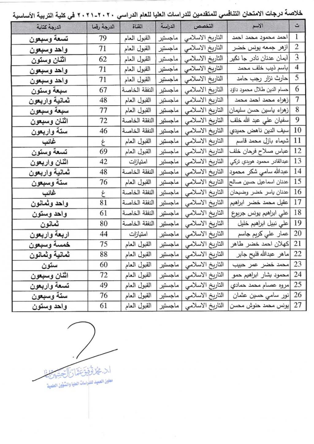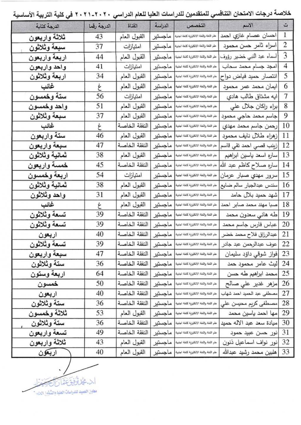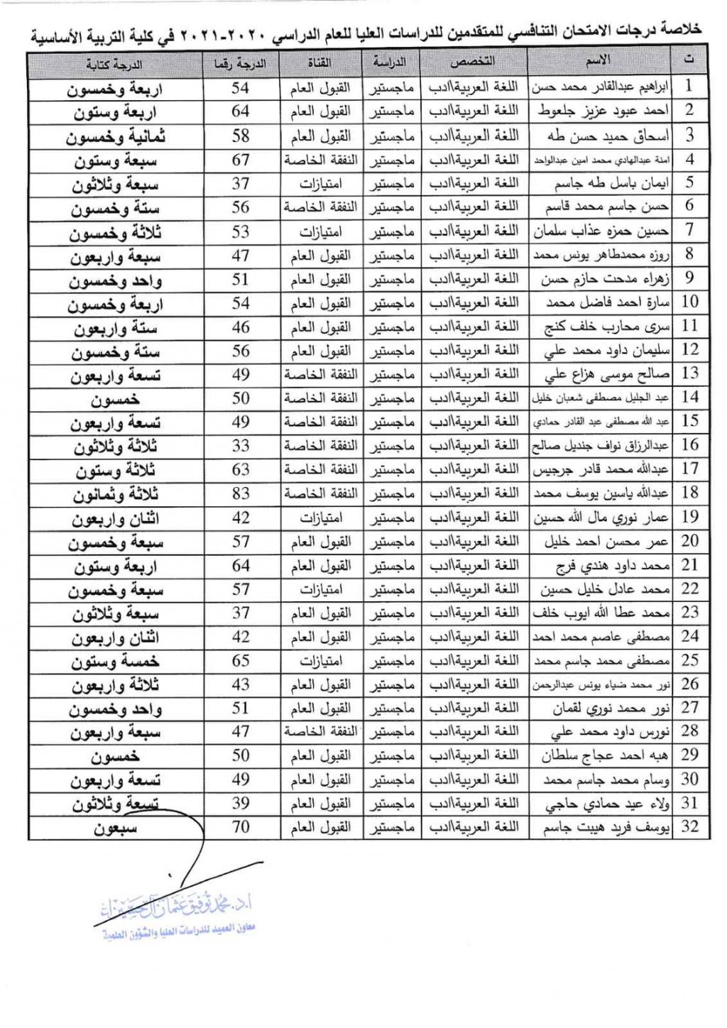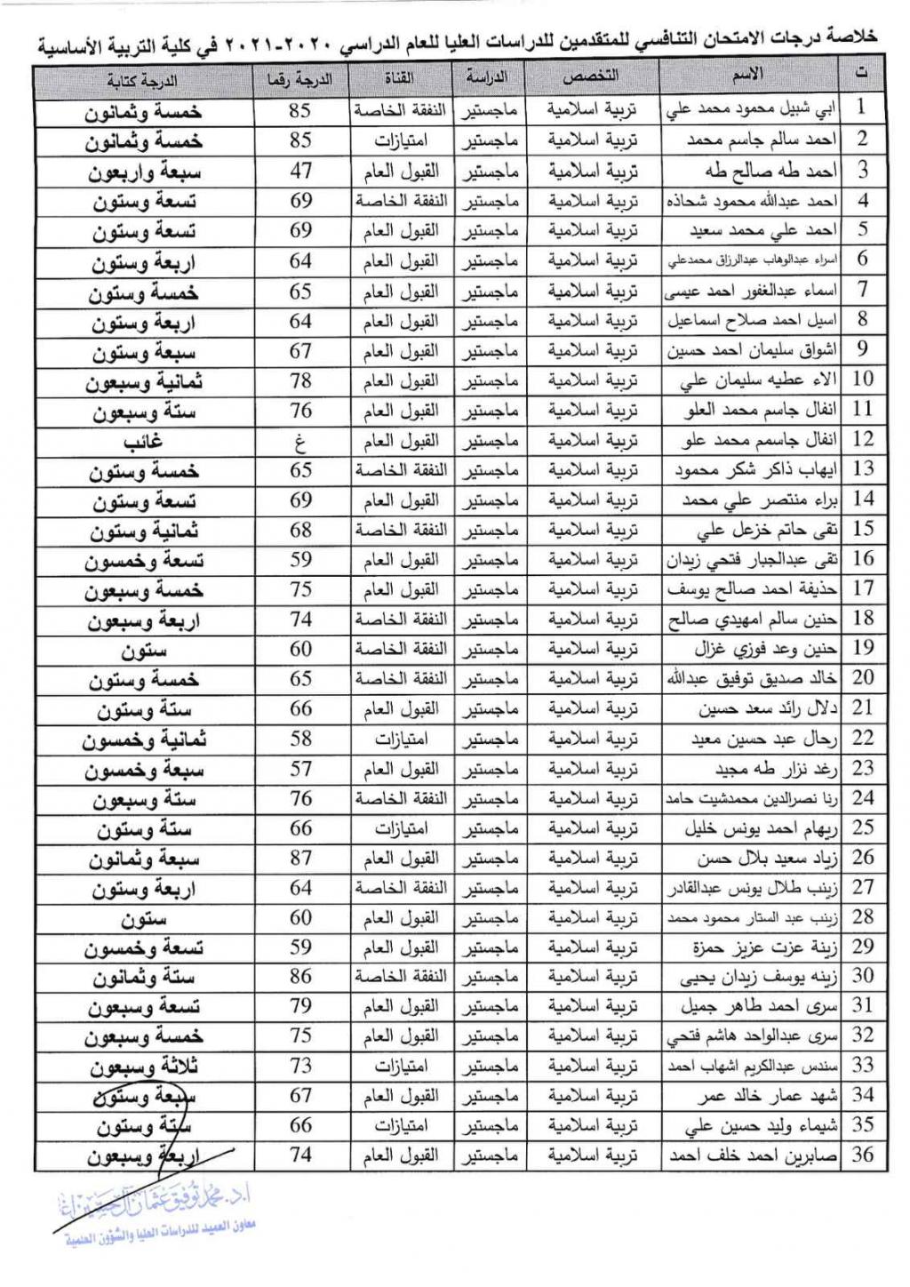 تم بحمد الله اكمال درجات الامتحان التنافسي من قبل عمادة كلية التربية الأساسية للطلبة المتقدمين على الدراسات العليا للعام الدراسي 2020-2021 .. والبالغ عددهم (381) موزعين على سبع اختصاصات مختلفة في الكلية ، وعلى الطلبة الراغبين بالاعتراض تقديم اعتراضاتهم يوم الاربعاء الموافق 21/10/2020 .. تمنياتنا لجميع الطلبة بالموفقية والنجاح …