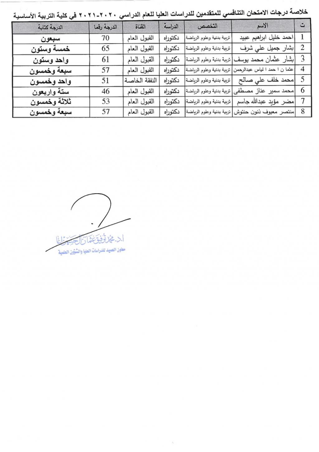 عمادة كلية التربية الأساسية تكمل درجات الامتحان التنافسي لطلبة الدراسات العليا للعام الدراسي 2020-2021