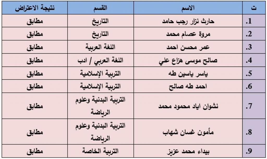 باشراف مباشر من قبل السيد عميد كلية التربية الأساسية الأستاذ المساعد الدكتور صفاء الدين عبد الله سليمان ومعاون العميد للشؤون العلمية الأستاذ الدكتور محمد توفيق عثمان آل حسين تم اليوم الأربعاء الموافق 21/10/2020 الانتهاء من نتائج اعتراضات الامتحان التنافسي للطلبة المتقدمين للدراسات العليا للعام الدراسي 2020-2021 وكما يلي :