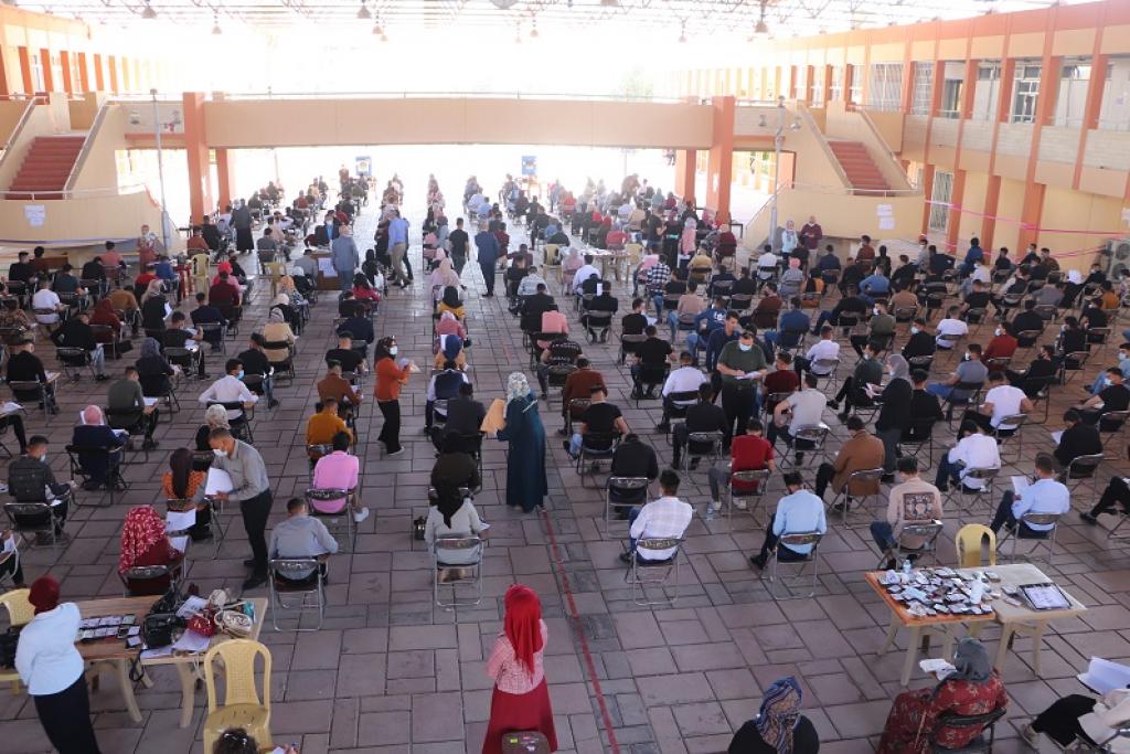 جرت اليوم الثاني الامتحانات الحضورية لطلبة كلية التربية الأساسية باشراف من قبل الأستاذ المساعد الدكتور صفاء الدين عبد الله سليمان عميد الكلية ومعاونيه العلمي والإداري الأستاذ الدكتور محمد توفيق عثمان آل حسين والأستاذ المساعد الدكتور محمد يونس صالح الجريسي صباح يوم الاثنين الموافق 12/4/2021 حيث تم زيارة القاعات الامتحانية في الكلية في الوجبتين الصباحية والمسائية والتي يتم تأدية الطلبة للامتحان الدور الاول للفصل الاول للعام الدارسي 2020 – 2021 ، واطلع السيد العميد على نمط اسئلة الامتحان لكل قسم وملائمتها مع المادة الدراسية التي تم اعطاءها للطلبة الكترونياً ، وأكد على استمرار توفير الامور الادارية للطلبة وذلك كي تسير الامتحانات بشكل نظامي وصحيح .