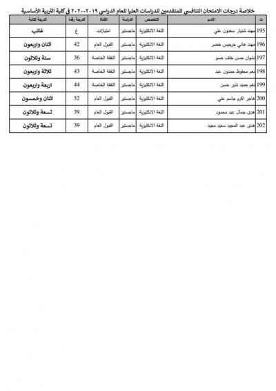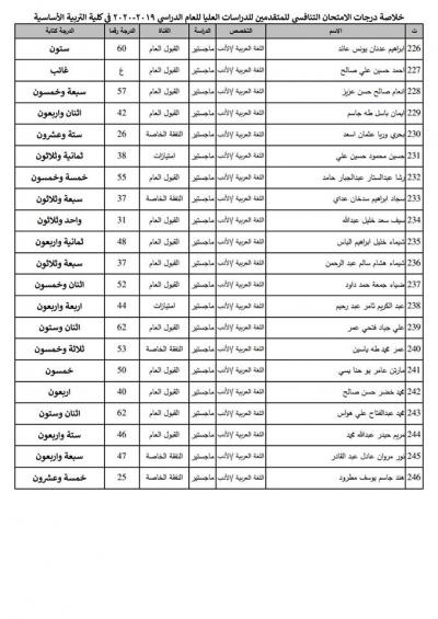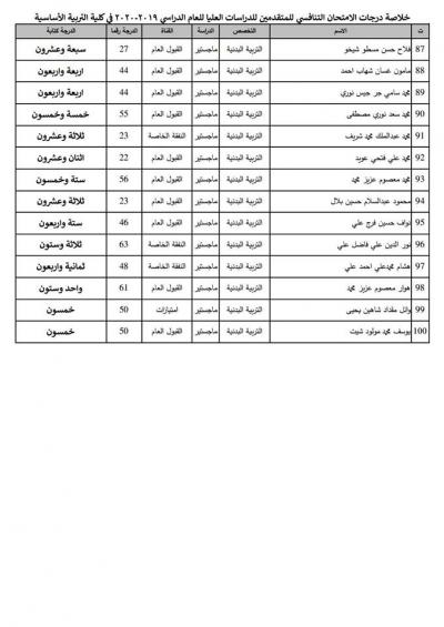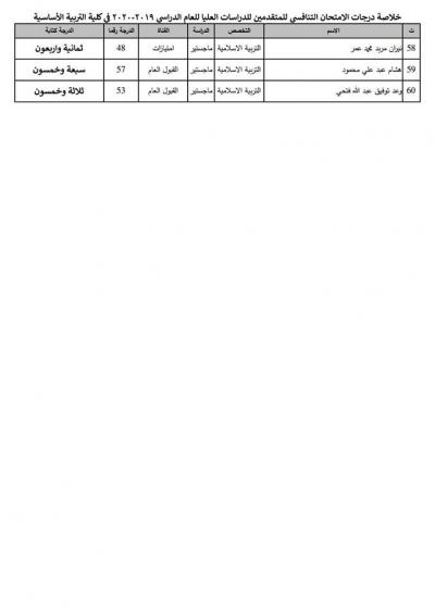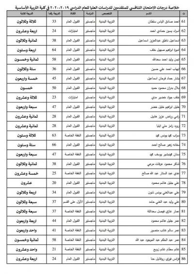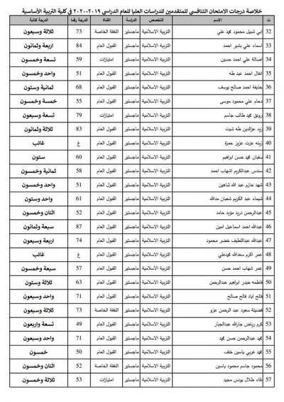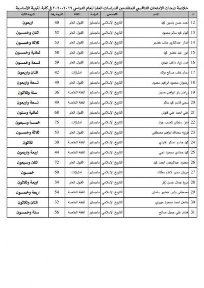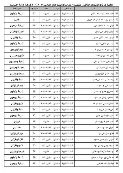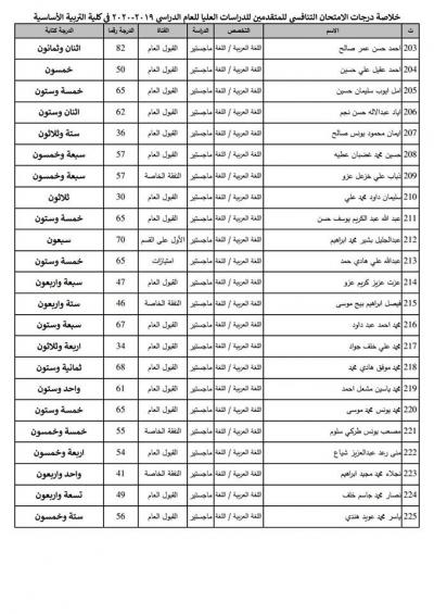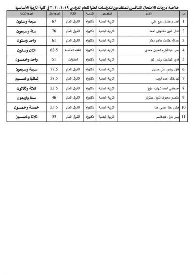 عمادة كلية التربية الاساسية تعلن عن بعض درجات الاختبار التنافسي
