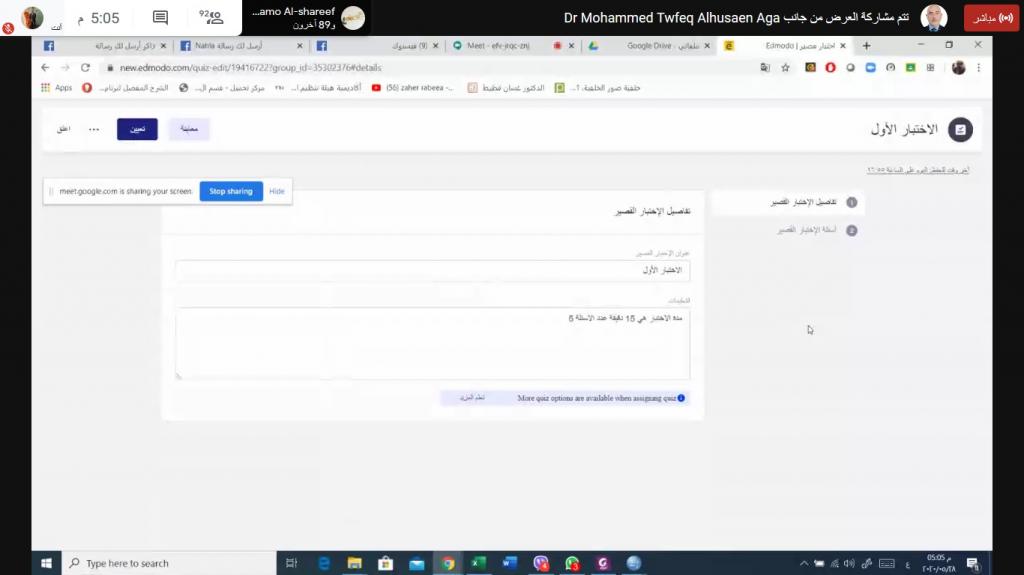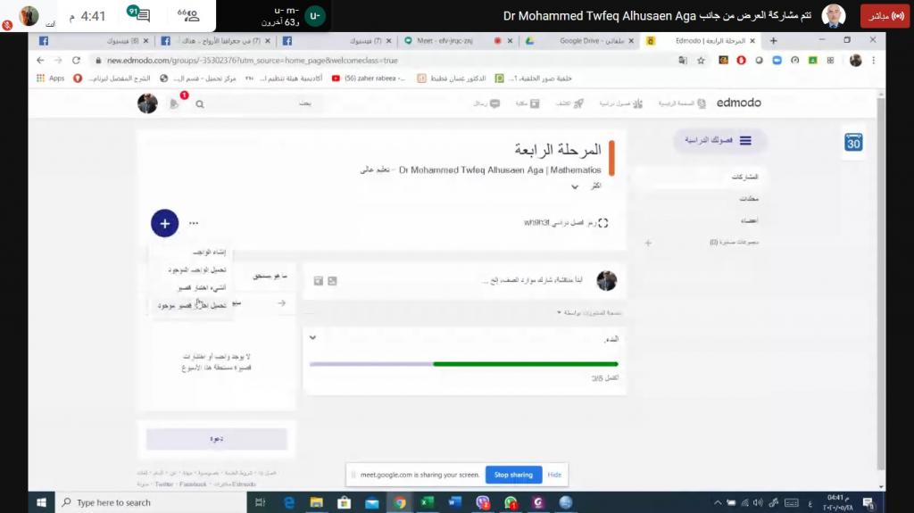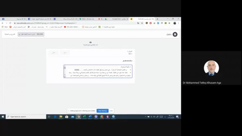 بتوجيه من قبل الاستاذ الدكتور صالح ارديني عميد كلية التربية الاساسية المحترم وبإشراف مباشر وإدارة من قبل الاستاذ الدكتور محمد توفيق عثمان معاون العميد للشؤون العلمية المحترم أقامت عمادة كلية التربية الاساسية بالساعة الرابعة عصراً من يوم الخميس الموافق 28/5/2020 ورشة علمية افتراضية حول منصة إدمودو قدم فيها التدريسي م.م. عمار سمير عناز من قسم الرياضيات محاضرة افتراضية وعبر الفضاء الالكتروني شرح مفصل عن منصة إدمومو الالكترونية ، تناولت الورشة تنفيذ التوجيهات الاخيرة الصادرة من وزارة التعليم العالي والبحث العلمي الخاصة باستخدام هذه المنصة الالكترونية والتي تعتبر الحل البديل عن إقامة الاختبارات الرسمية في القاعات الامتحانية للكلية ، وتهدف الورشة الى شرح مفصل عن واجهة هذه المنصة للسادة التدريسيين وما تحتويه خيارات ثانوية التي تستخدم في وضع الاسئلة المختلفة والتي سوف يتم استخدامها لإدارة وتنفيذ وإجراء الاختبارات الكترونياً .