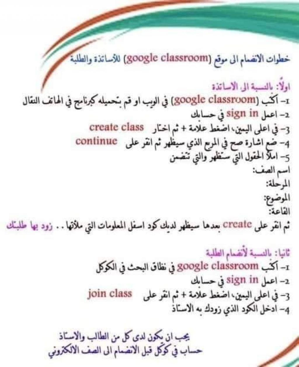 ادناه روابط الجداول الاكترونية الخاصة بالأقسام العلمية لكلية التربية الأساسية … مع الكود الخاص (Google Classroom) لذا نهيب بطلبتنا الاعزاء الالتحاق بهذه الصفوف لغرض التواصل مع اساتذتهم لاخذ المادة العلمية …