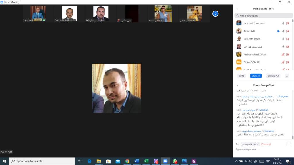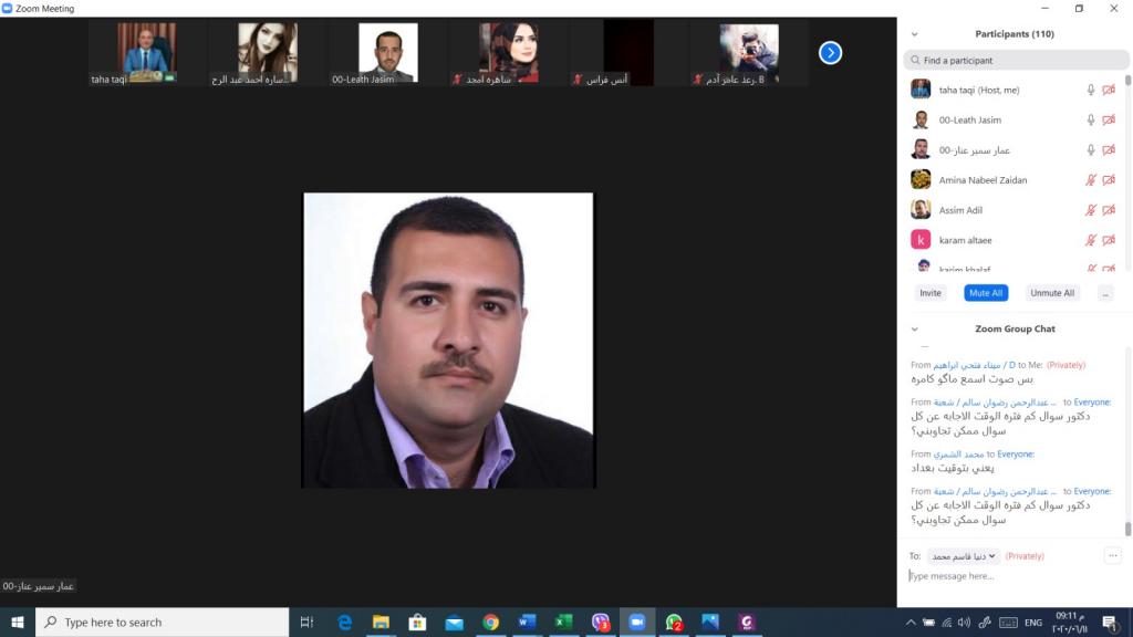 بتوجيه من الاستاذ الدكتور صالح ارديني عميد كلية التربية الاساسية وباشراف مباشر من قبل الاستاذ الدكتور محمد توفيق عثمان معاون العميد للشؤون العلمية نظمت عمادة الكلية مساء يوم الخميس الموافق 11/6/2020 عبر الفضاء الالكتروني ولمنصة Zoom محاضرة مخصصة لطلبة الدراسات الاولية في الكلية وقدم السيد م.م. عمار سمير عناز والسيد ليث جاسم توضيح كامل عن كيفية التسجيل والدخول الى الامتحان الالكتروني Edmodo من قبل الطلبة .
