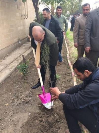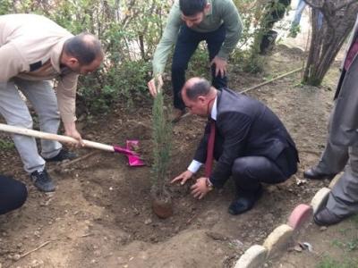 عميد كلية التربية الاساسية ومنتسبيها يشاركون في حملة تشجير الجامعة